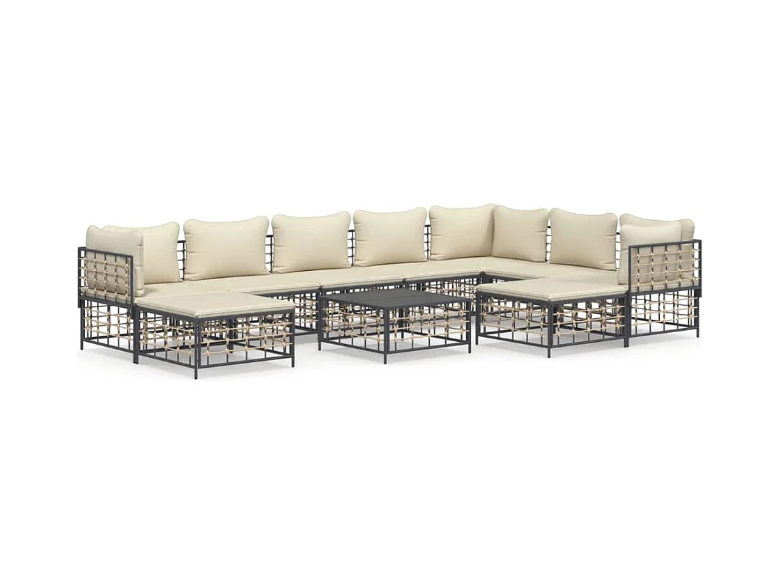 Sofá esquinero de jardín con cojines de resina tejida gris