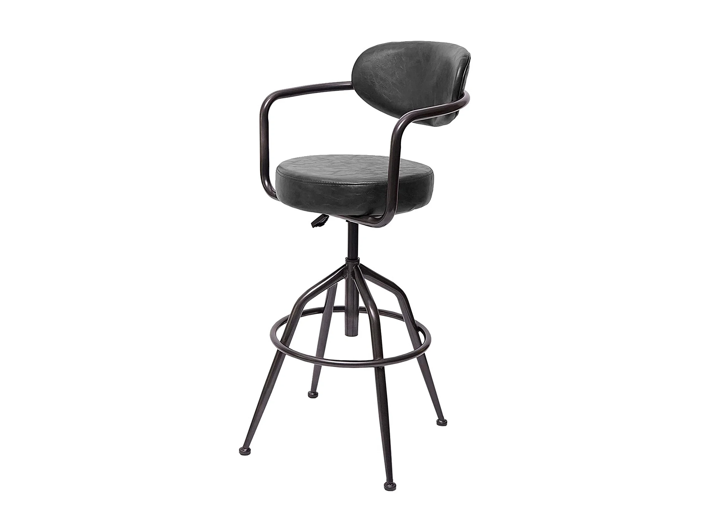1x taburete de bar giratorio estilo industrial vintage gris regulable en altura con respaldo TDB04057
