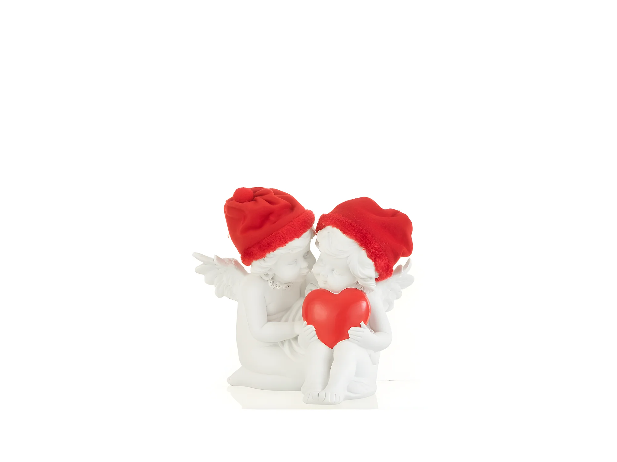 2 ángeles con corazón rojo en resina blanca 12.5x7.5x16.5 cm