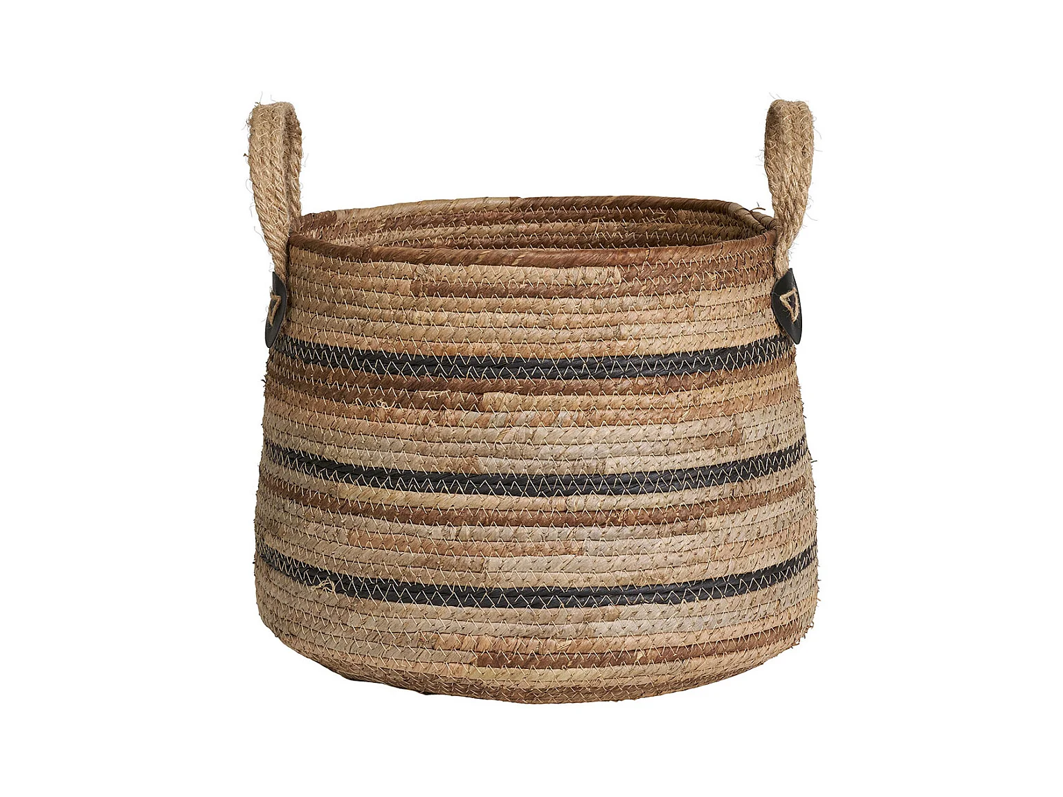 Set van 2 ERBA opbergmanden – Natuurlijke jute met strepen en leren handvatten
