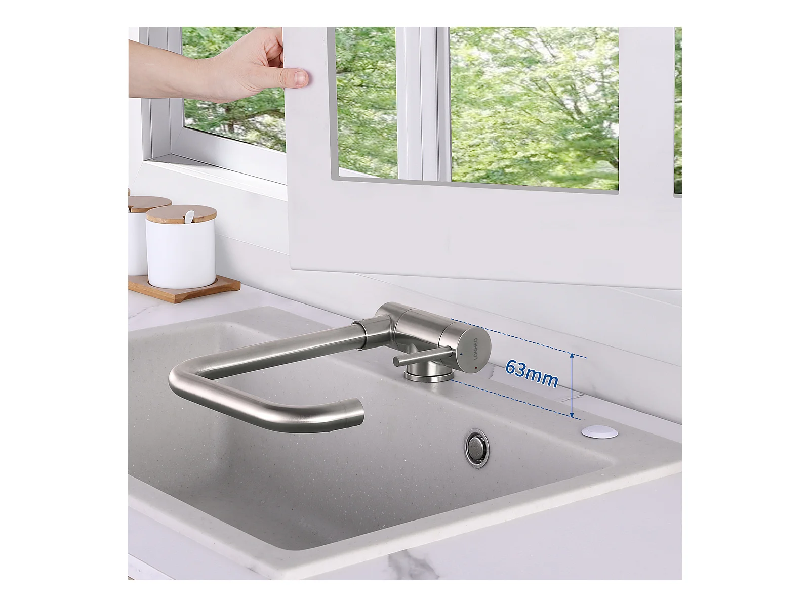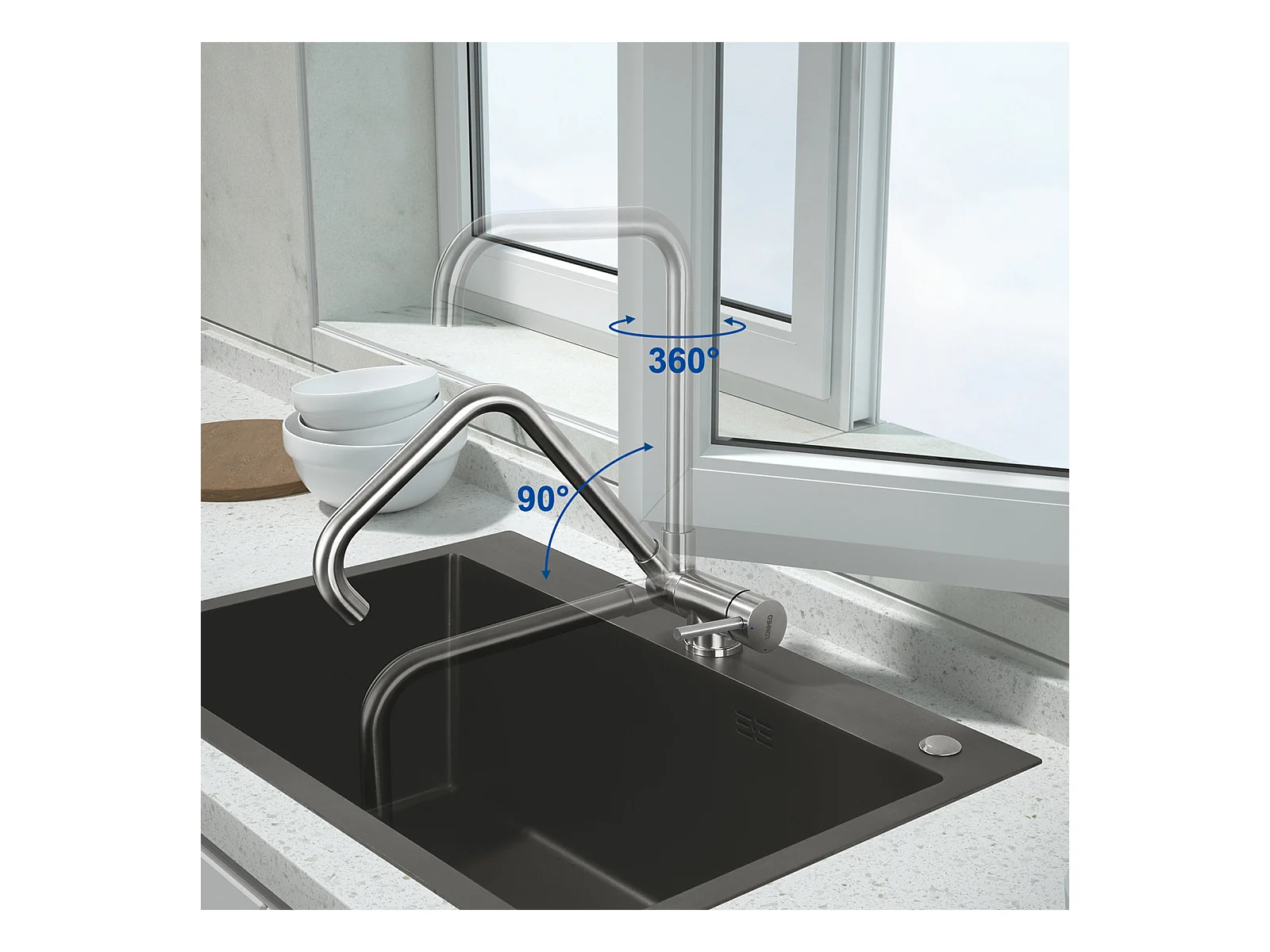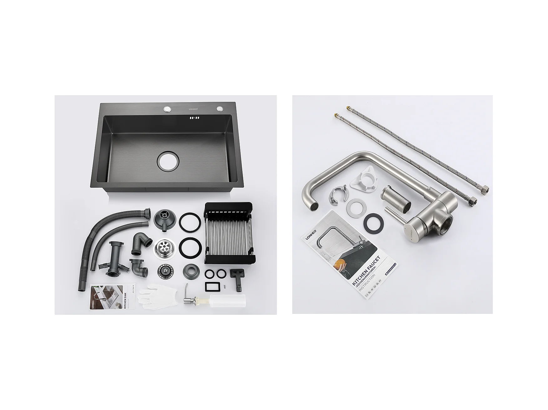 Lonheo Max Fregadero de Cocina Negro 68x45x19CM con Distributor Jabón y Escurridor Cesta+Mezclador CuiSine Inoxidable 304 Abatible Girante,Modelo UE
