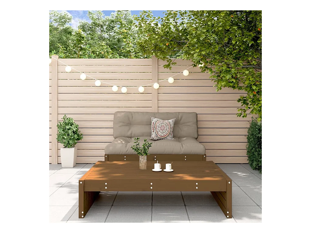Juego muebles jardín 2 piezas y cojines madera maciza marrón miel
