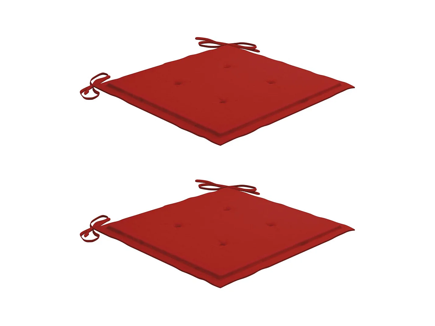 Sillas de jardín 2 piezas con cojines rojos Madera maciza de teca