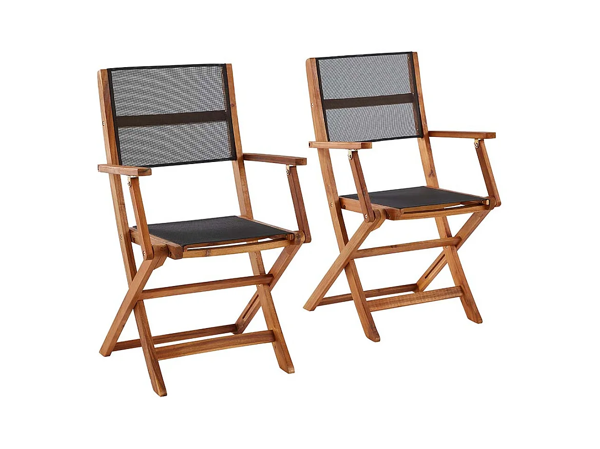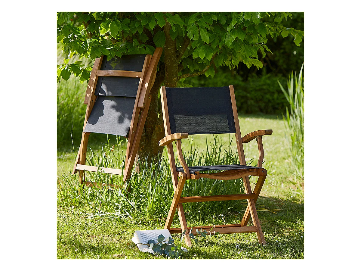Juego de 2 sillas de jardín plegables de aluminio y textilene negro