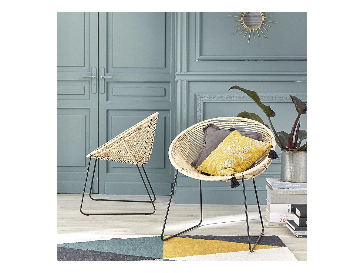 Silla de Ratán Natural y Metal Negro Atmosphera - Estilo Natural y Elegante
