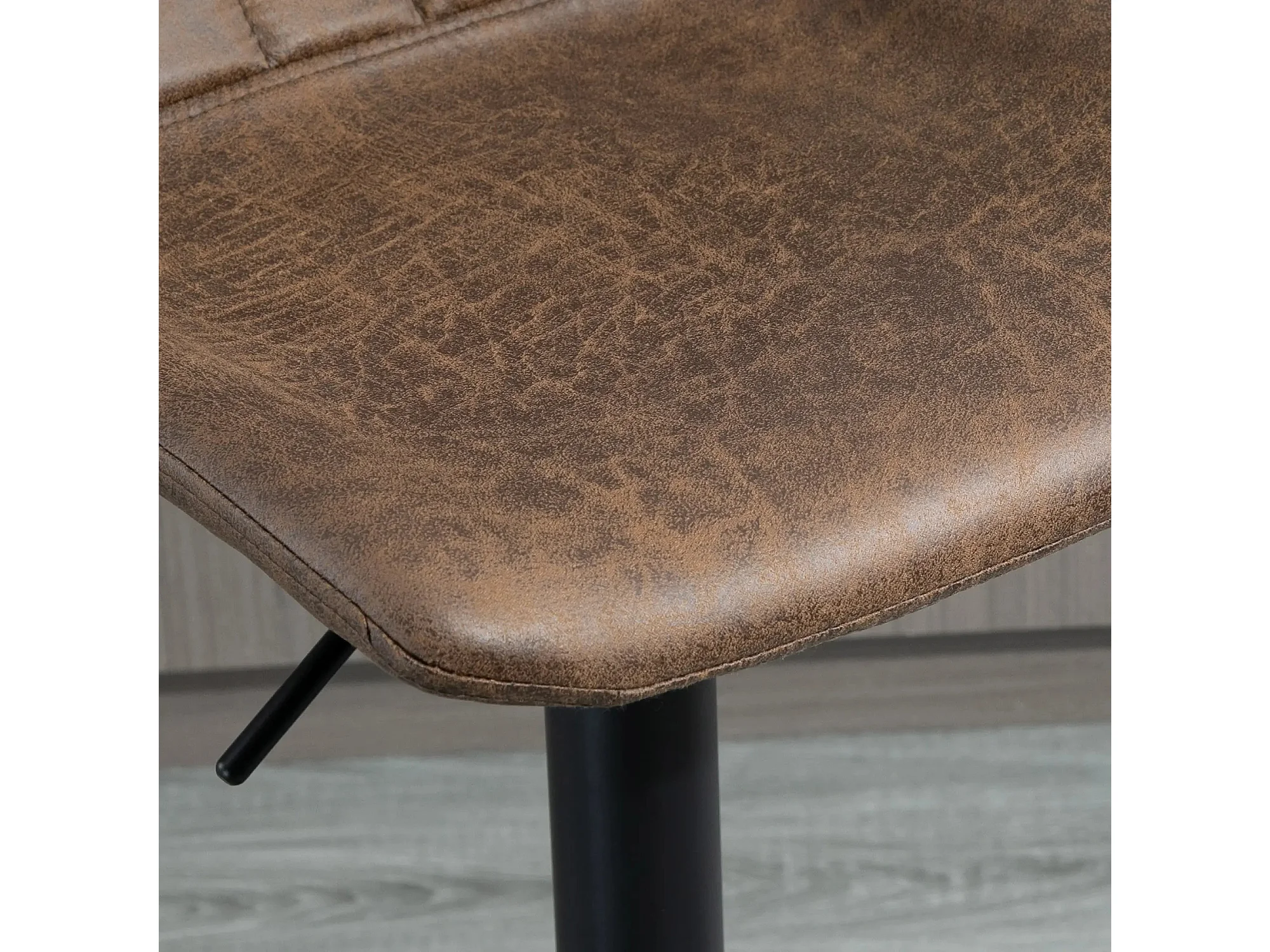 2 taburetes de bar ajustables de tela marrón con respaldo y reposapiés para cocina, 43 x 46 x 110 cm