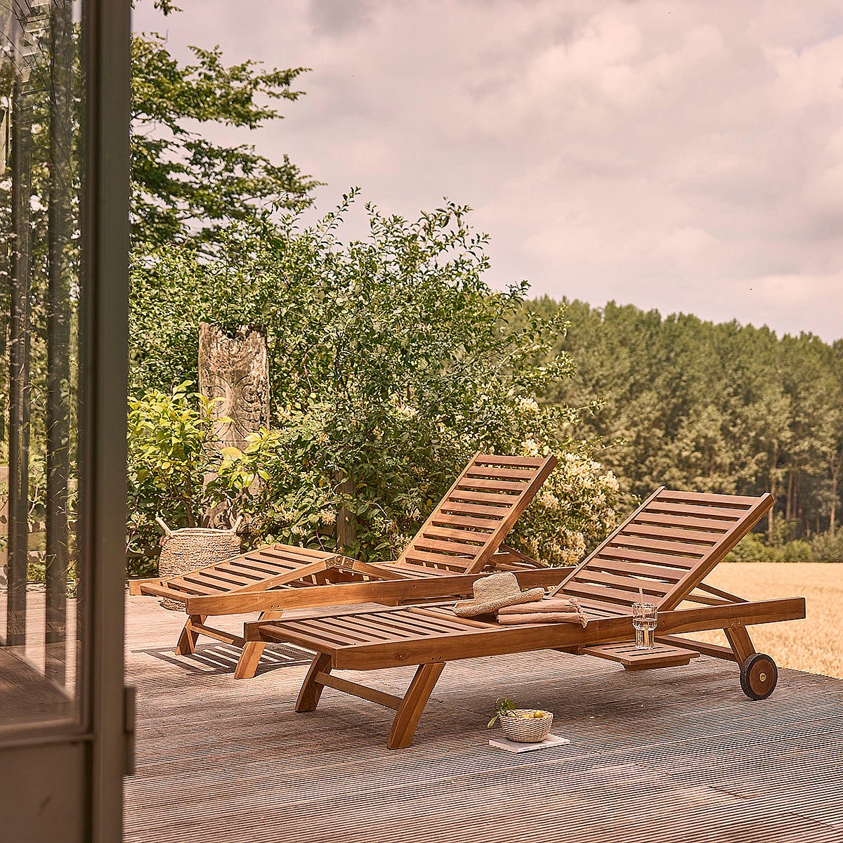 2 tumbonas de madera de teca aceitada