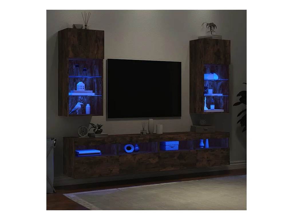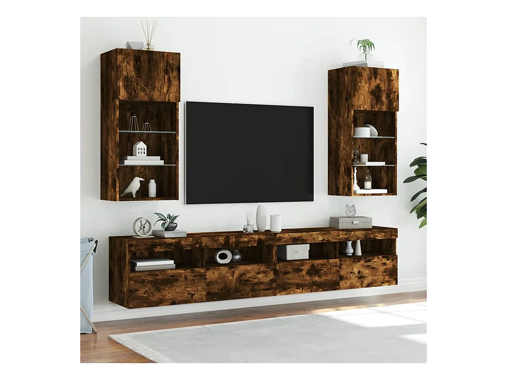 2 uds Muebles TV con luces LED roble ahumado 40,5x30x90 cm YOE94032