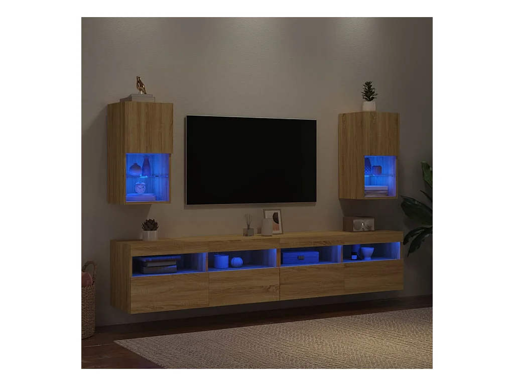 2 uds Muebles TV con luces LED roble Sonoma 30,5x30x102 cm YOE79387