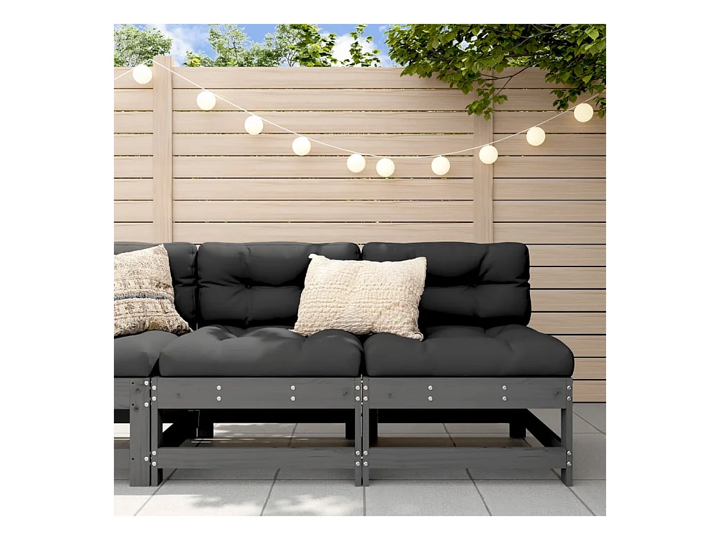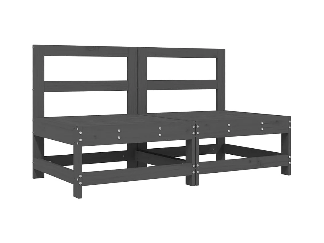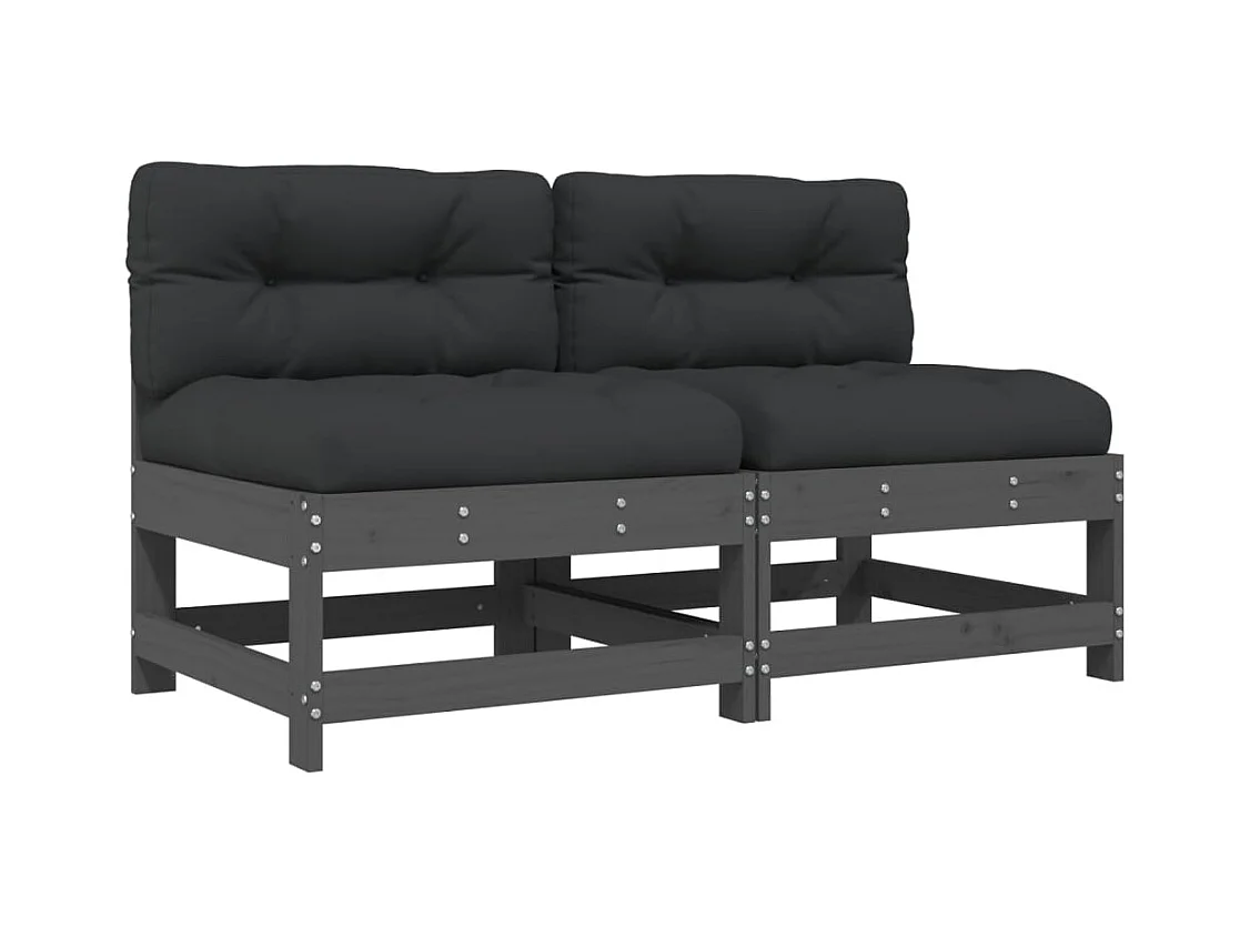 2 uds Sofás centrales con cojines madera maciza de pino gris KOW94131