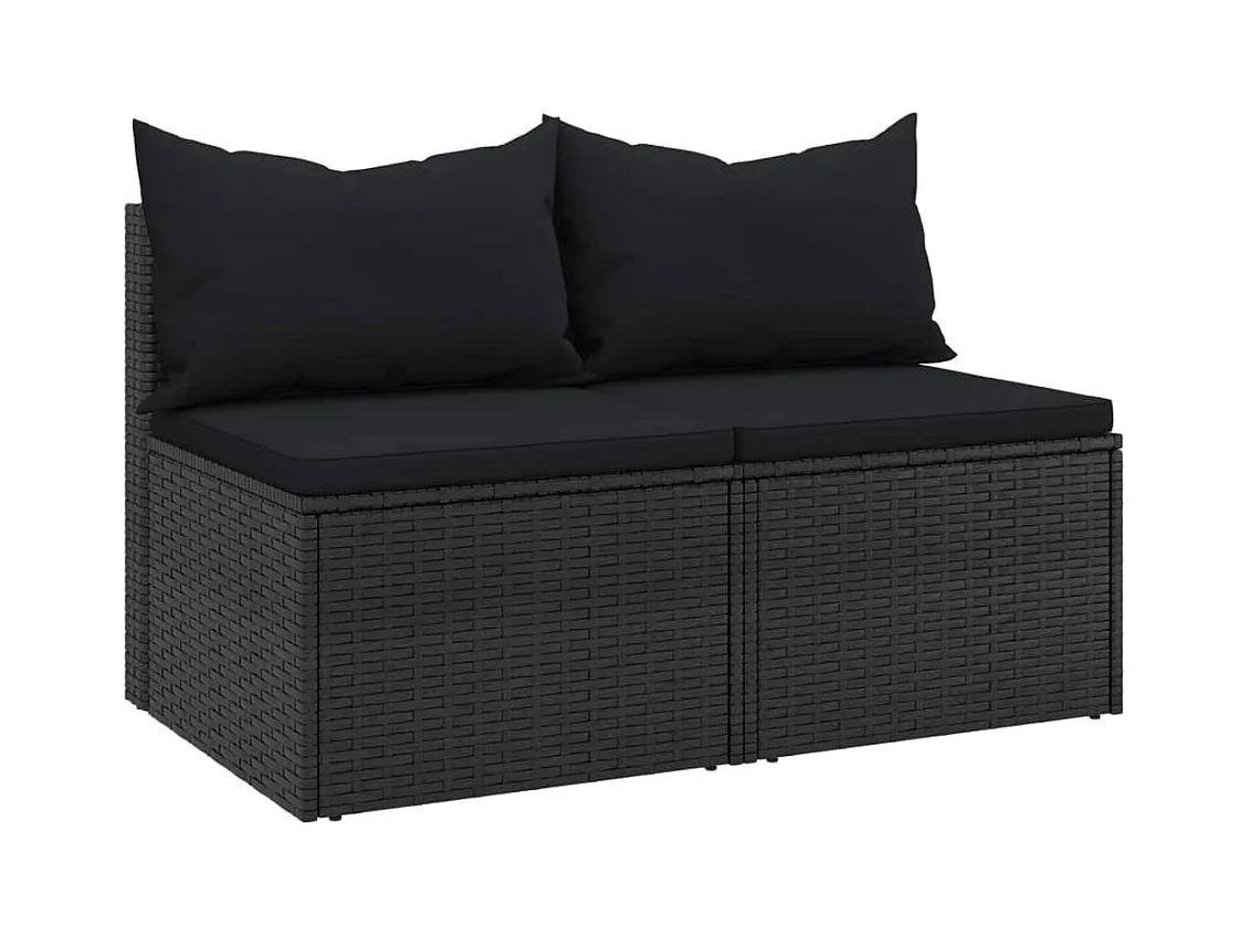 2 uds Sofás centrales jardín con cojines ratán sintético negro KOW59287