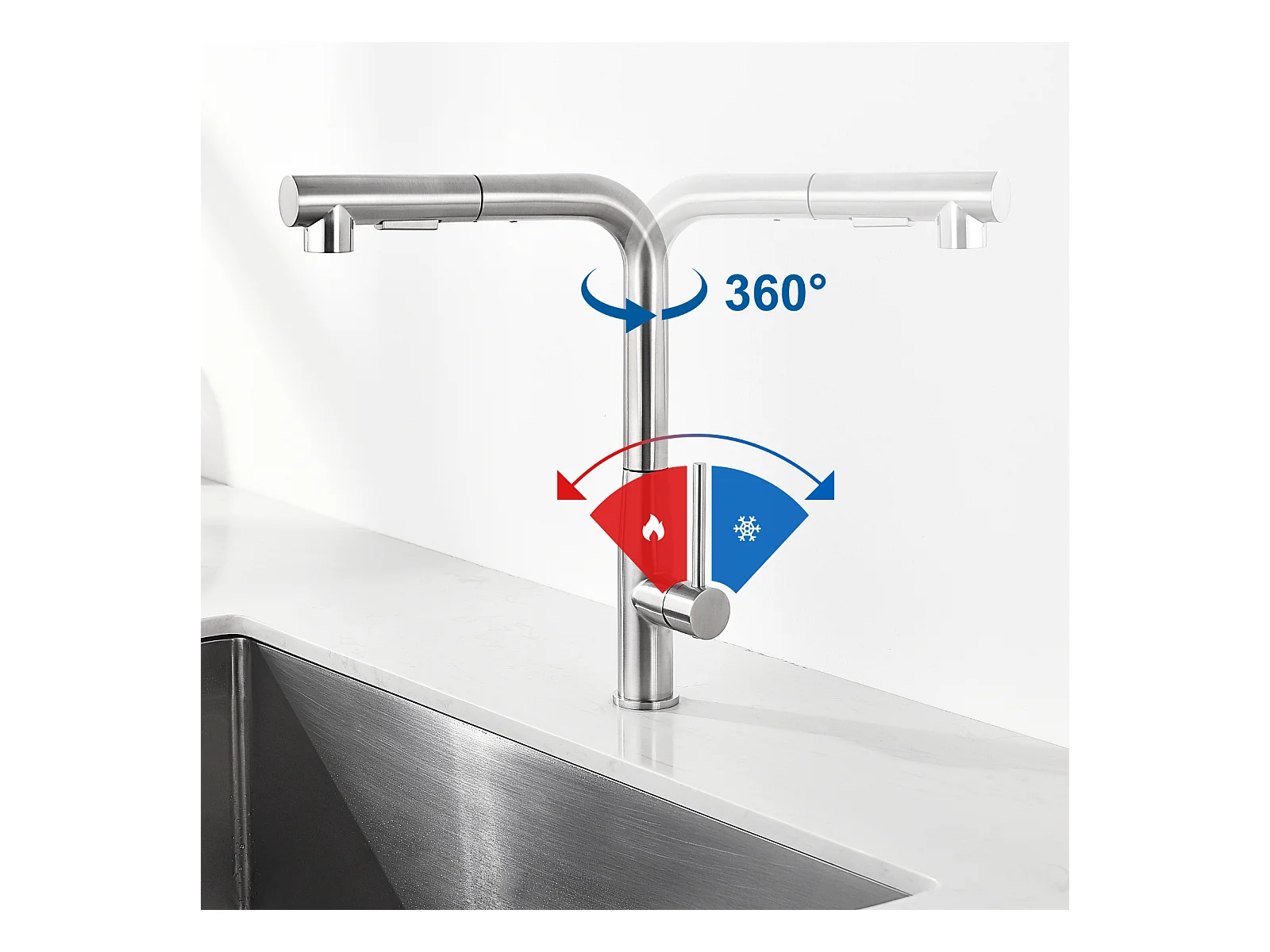 Mezclador Cocina con Ducha Extraíble Negro mate Rotativo a 360 °eN Acero Inoxidable Grifo Cocina Fregadero 2 Funciones Mezclador Cocina