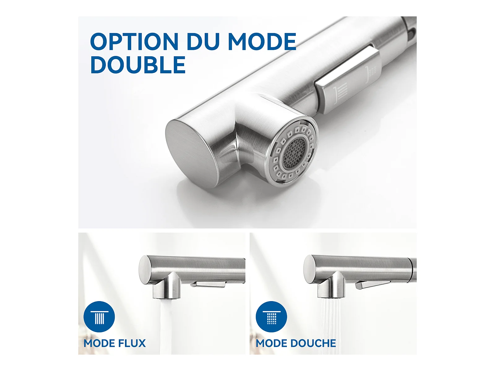 Grifo de cocina con ducha extraíble de acero inoxidable - Negro mate - RONA