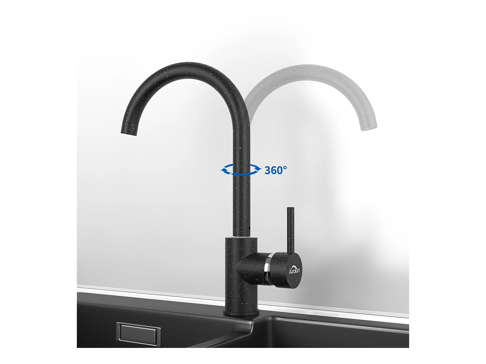 2en1 Fregadero Cocina Negro 68x45x19CM con Distributor Jabón y Escurridor Cesta+Grifo Cocina Rotativo 360°Agua Fría Caliente Negro con puntos blancos