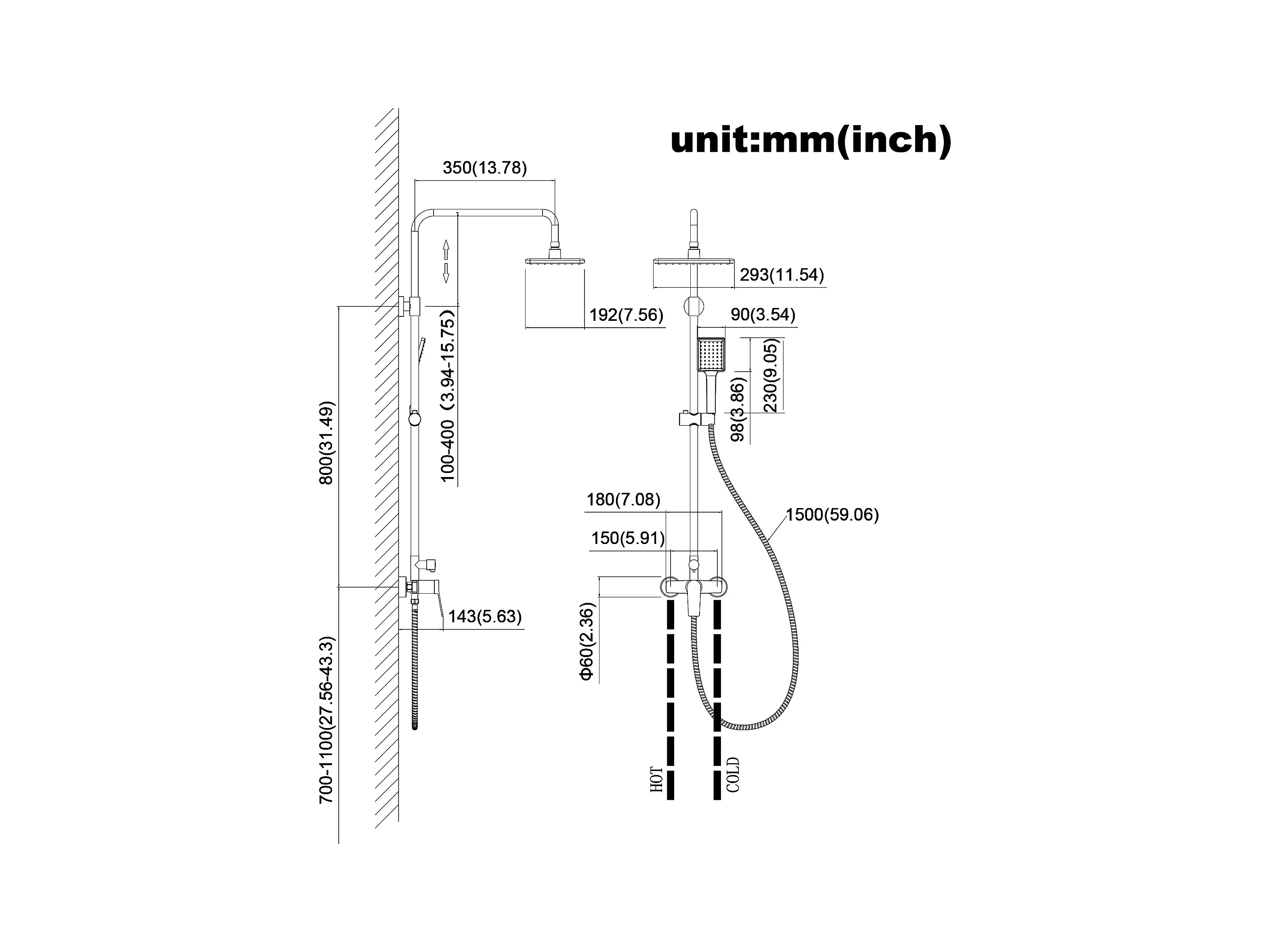 Columna de Ducha Negra con Grifos Conjunto de Ducha Altura Ajustable 2 Funciones con Ducha de Cabeza y Ducha de Mano