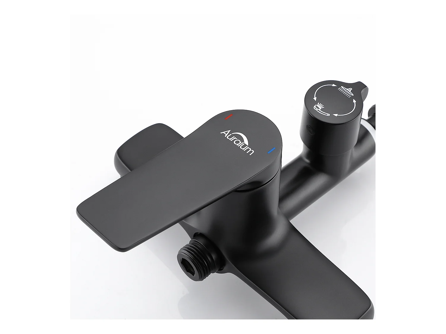 AURALUM MAX Columna de Ducha Negra con Grifos Conjunto de Ducha Altura Ajustable 2 Funciones con Ducha de Cabeza y Ducha de Mano