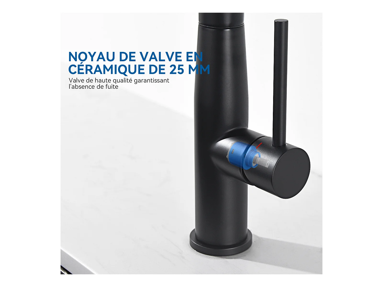 AuraLumMax Mezclador de CCocina con Ducha Extraíble,2 Modos Jet, Grifo Cocina Rotativo 360°,Agua Caliente/Fría,Cartucho de Cerámica, Negro,Modelo UE