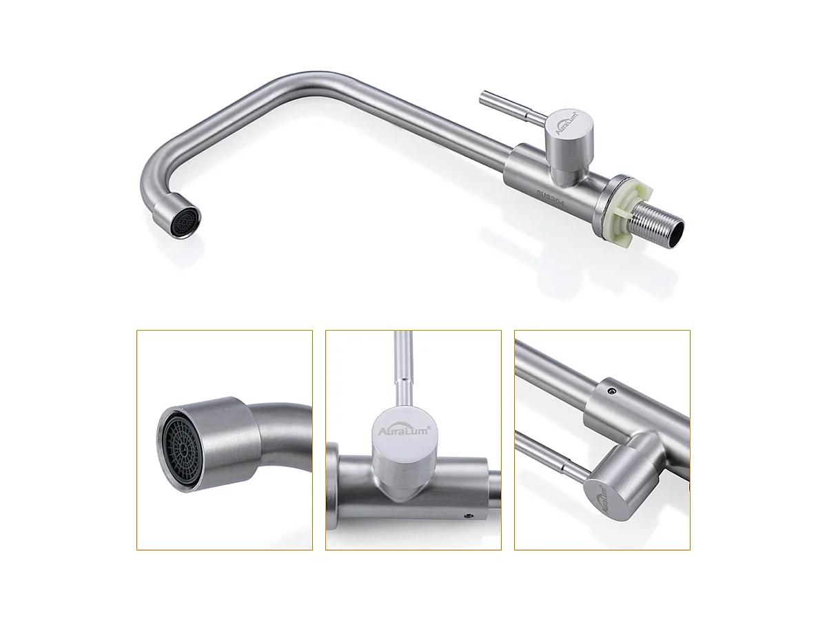 2pcs Auralum max Grifo de Cocina de Agua Fría, Pivotante de 360°, Grifo de Fregadero de Agua Fría de Palanca Única, Acero Inoxidable- Cepillado