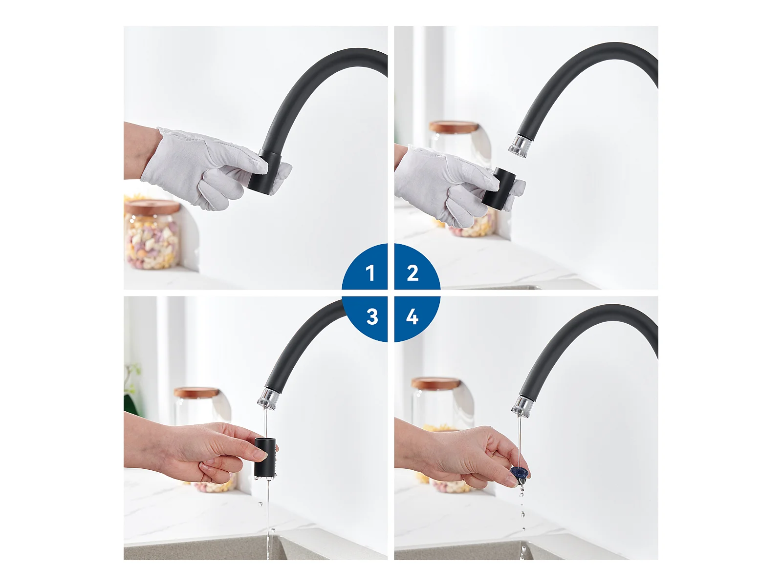 2pcs Mestigador de Cocina Giratorio de 360° Elegante Grifo Fregadero Cefo Alto con Barbotero Desmontable para Cocina,de Agua Caliente y Fría,Negro