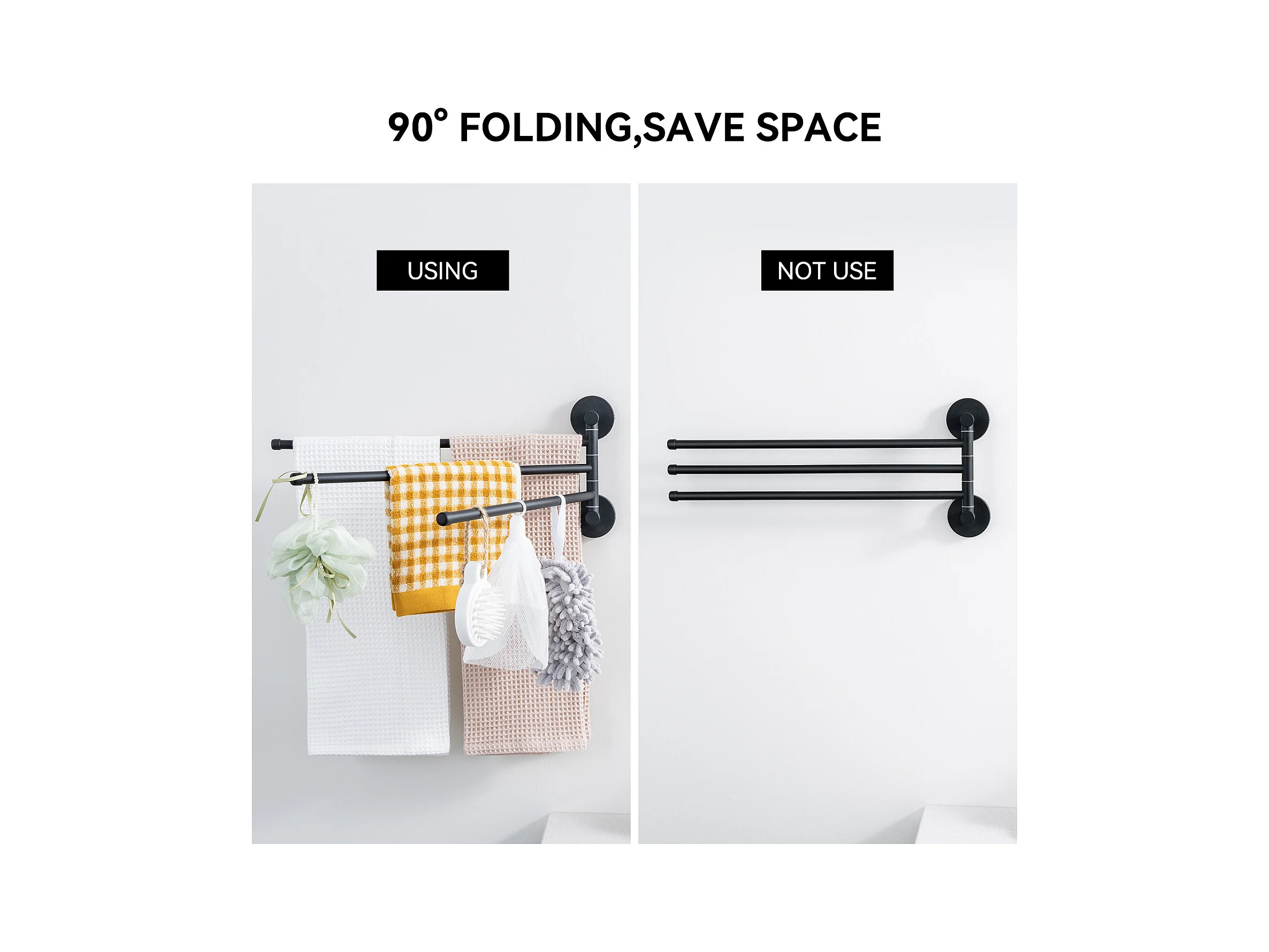 2pcsAuralum max Toallero con 3 Barras 180° Giratorias, Acero Inoxidable 304 Toallero de Pared Toallero para Baño Cocina-Negro(40CM)