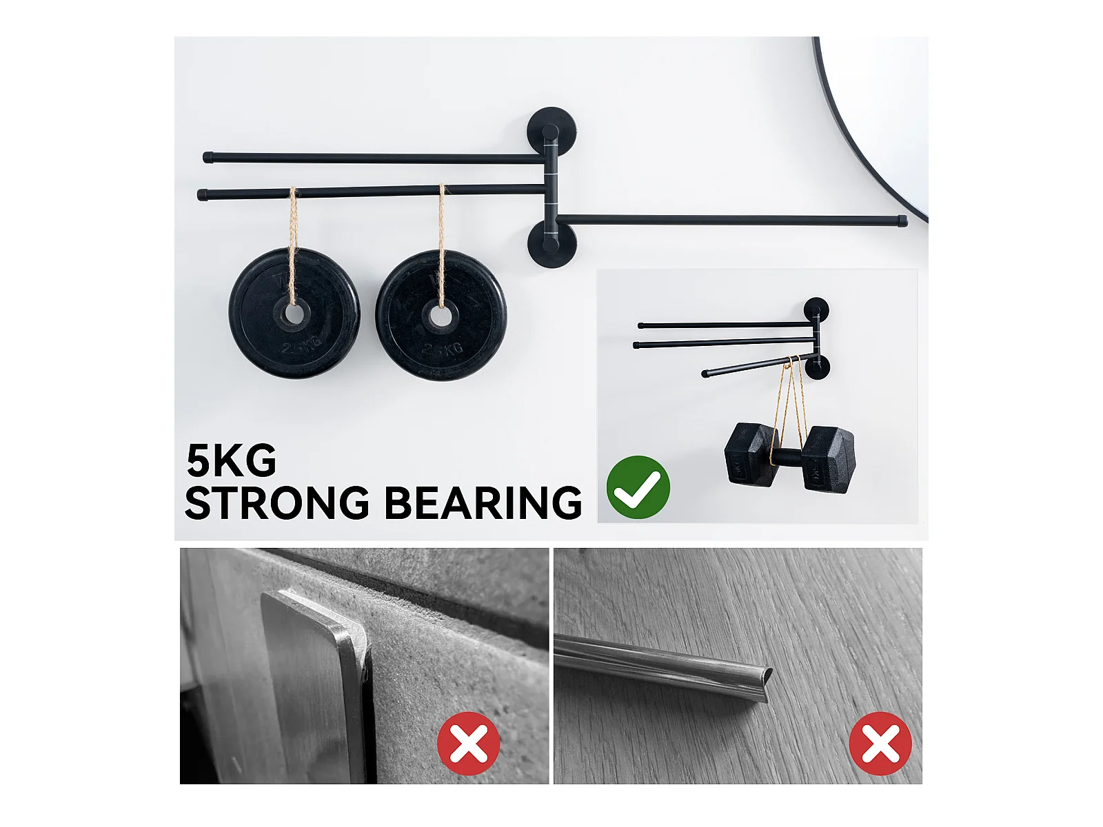Auralum MAX Toallero de baño, Toallero Doble Adhesivo/Perforación, Toallero de Dos Brazos montado en la Pared para baño Cocina, Negro