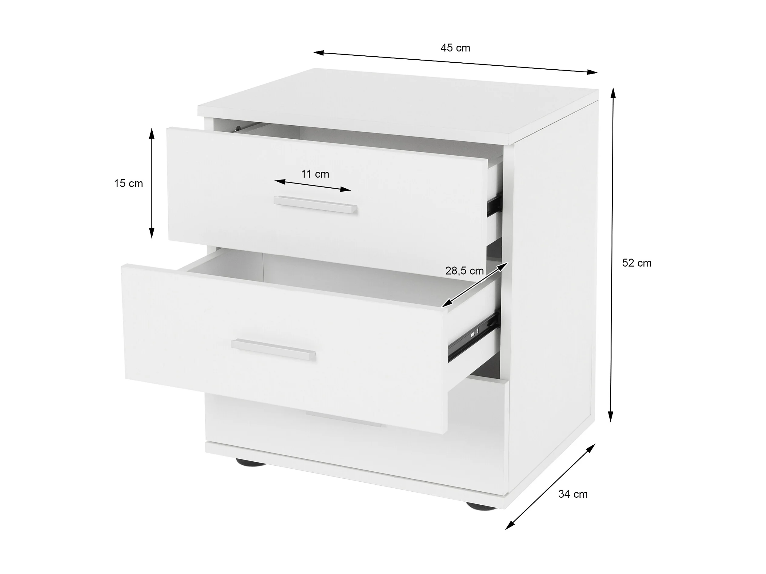 Mesita de noche con 2 cajones acabado blanco, 45.5cm(alto) 50cm(ancho) 34cm(fondo)