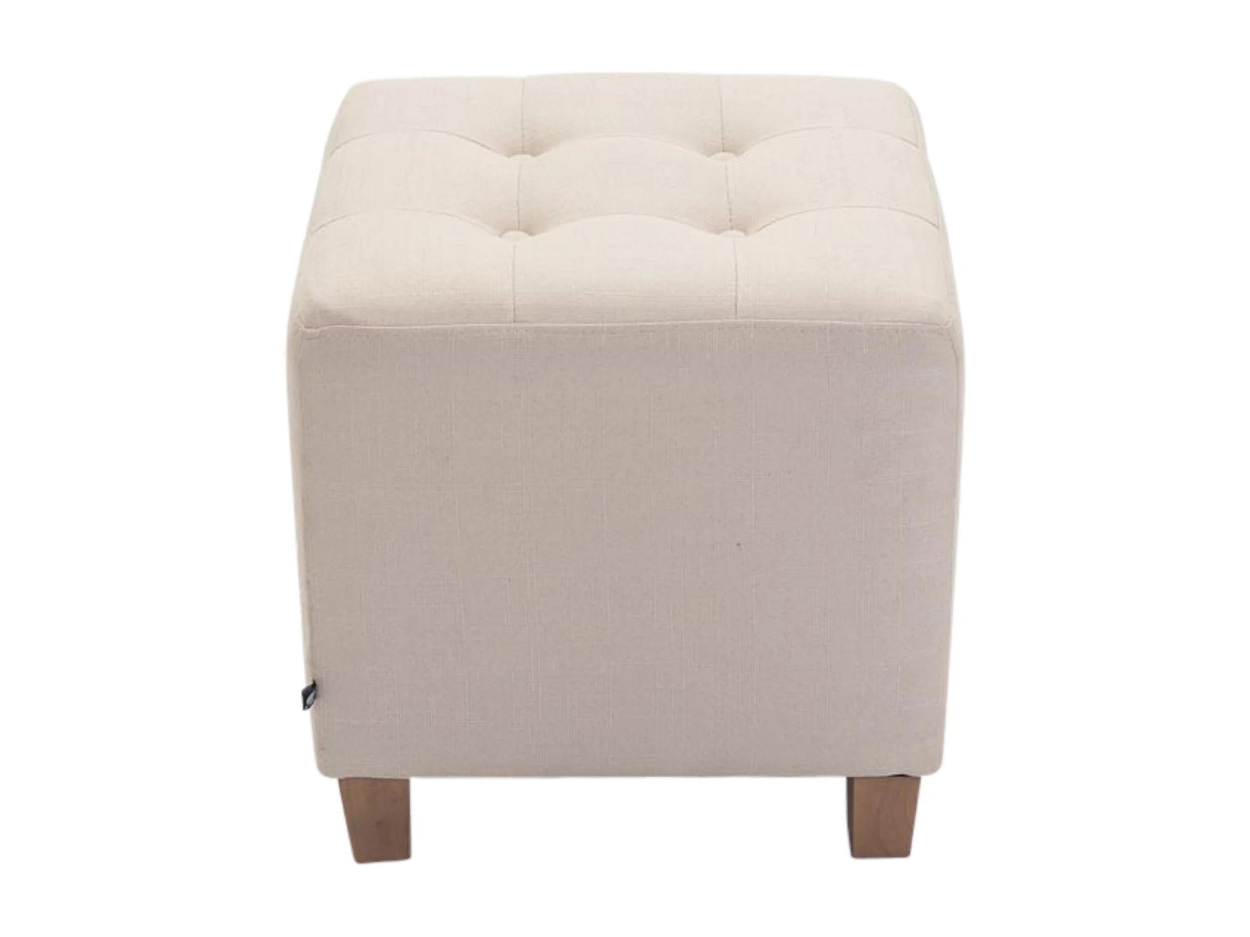 2x taburetes bajos puff reposapiés otomanos botones decorativo en tela crema base madera M10_001629