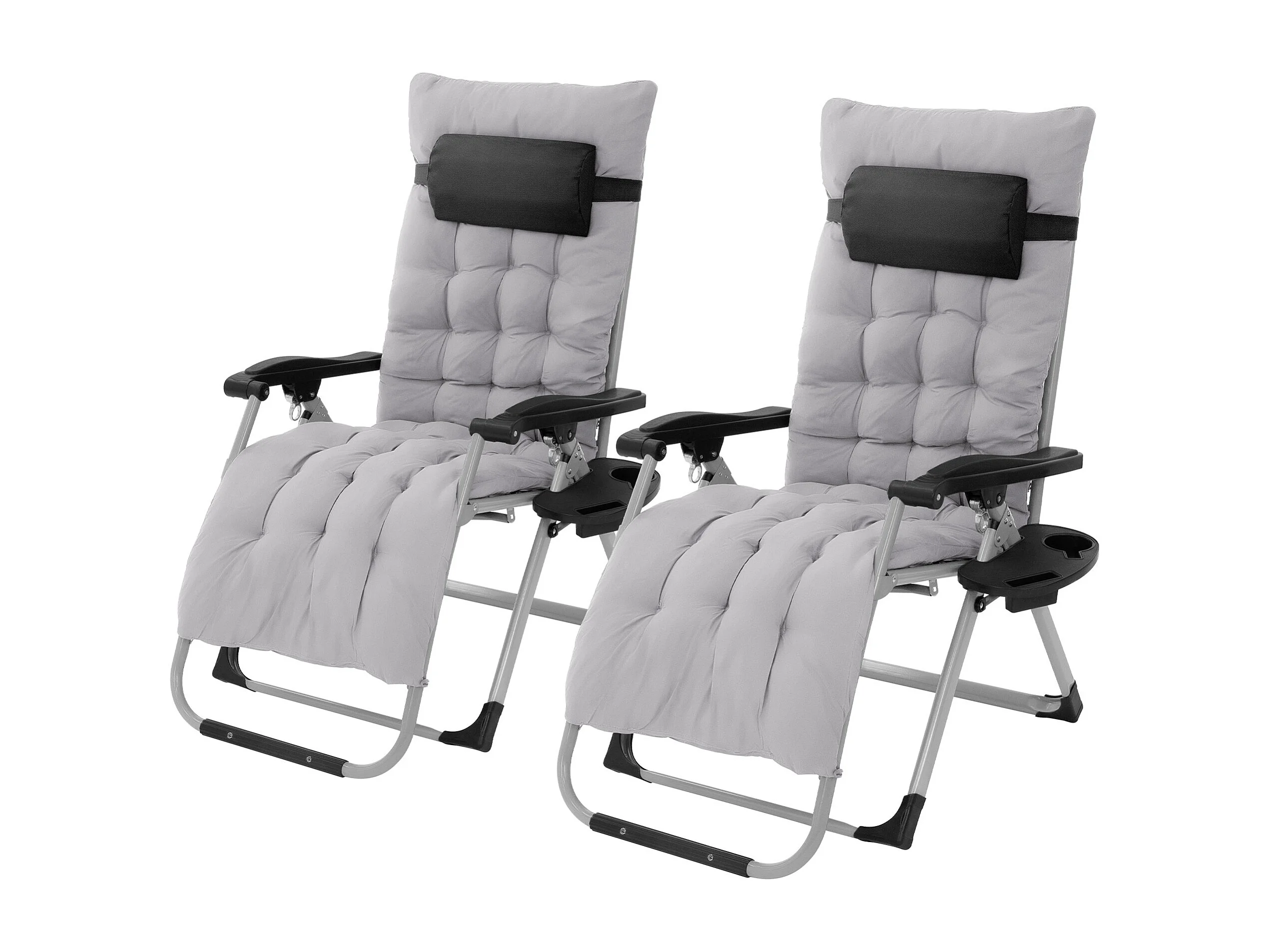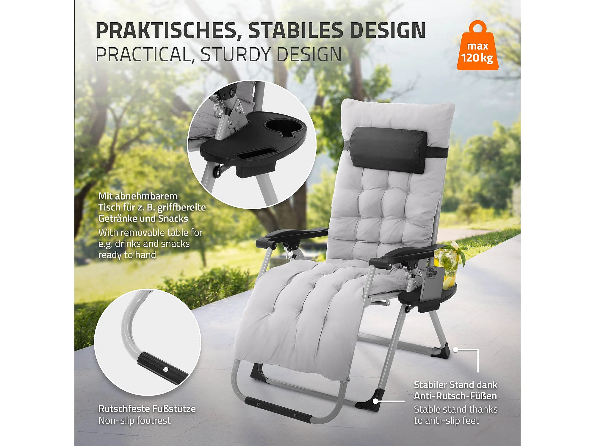 2x Tumbona plegable gris sillón con cojín cervical silla ajustable portabebidas