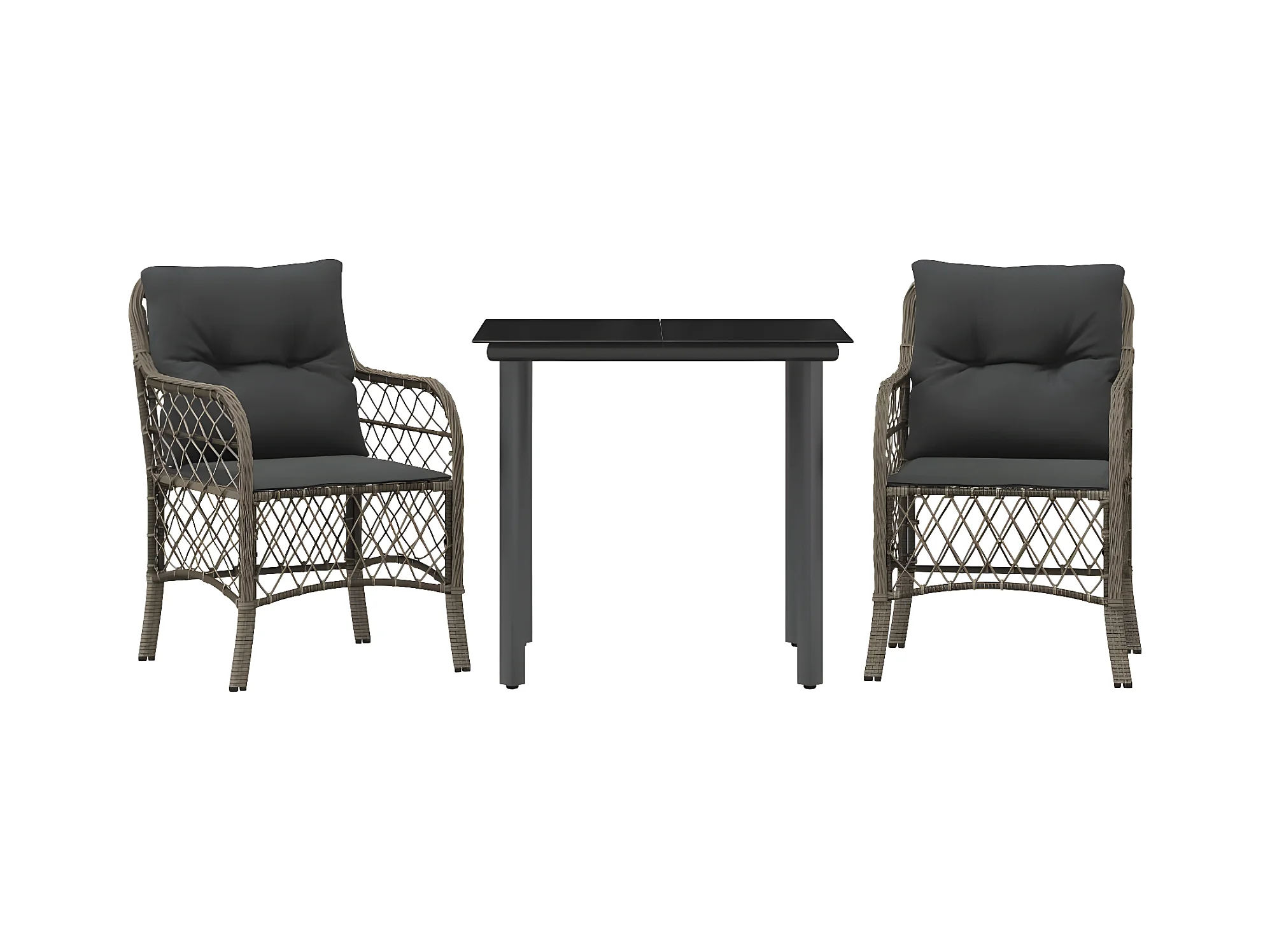 Set comedor de jardín 3 piezas con cojines ratán sintético gris