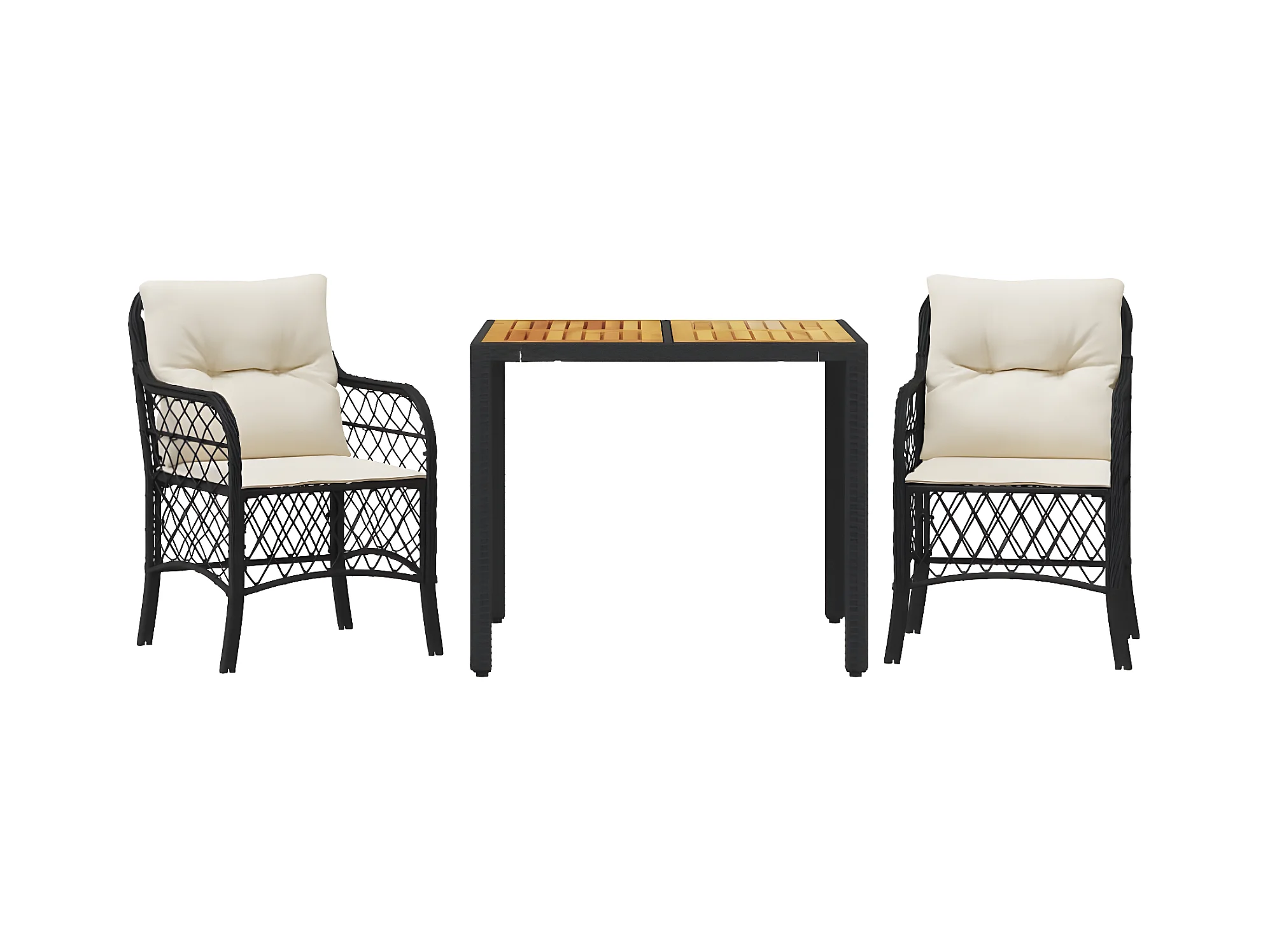 3 pzas Comedor de jardín ratán sintético madera acacia negro KOW97185