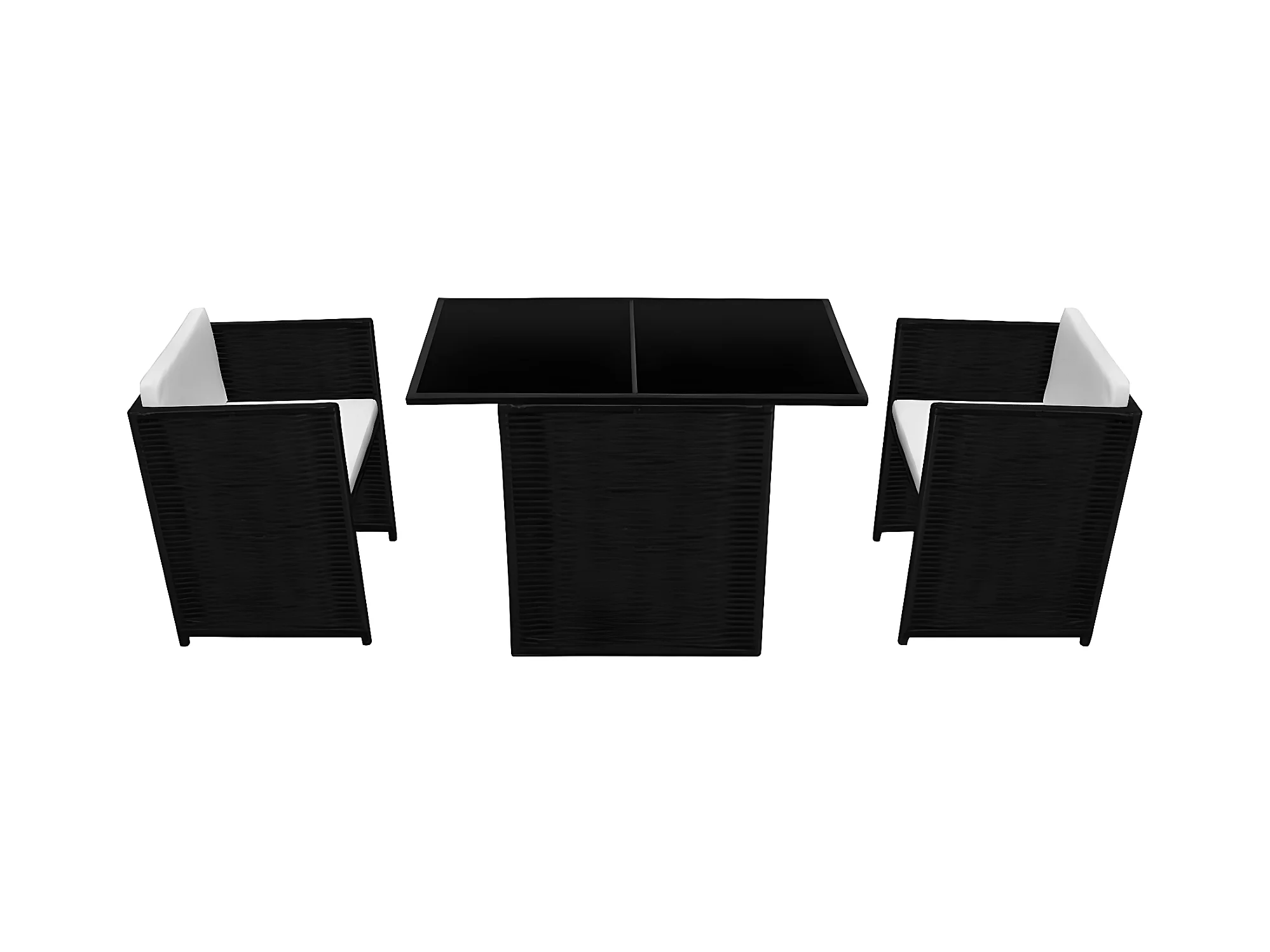 3 pzas Comedor de jardín jardín y cojines poli ratán negro KOW94812
