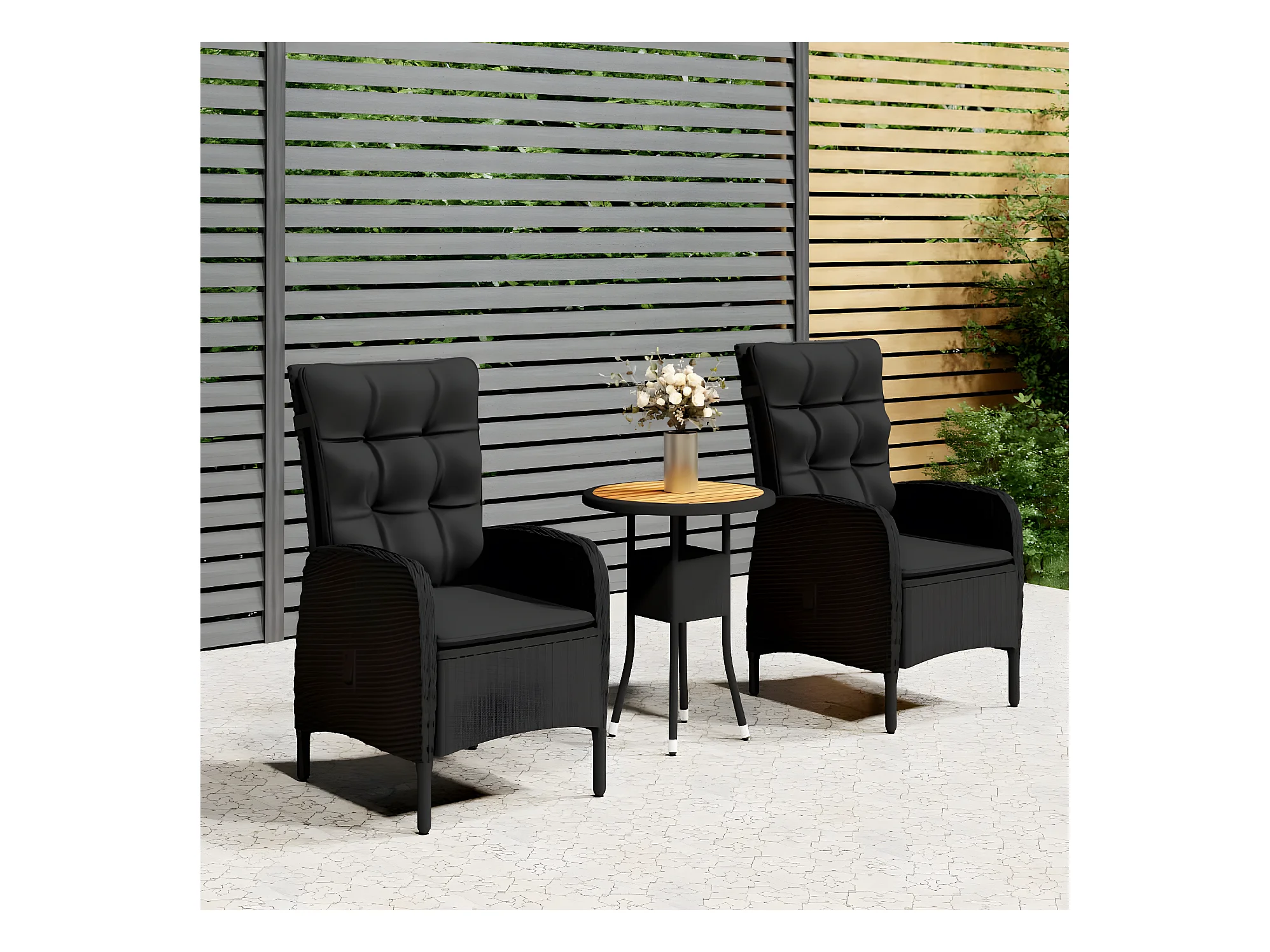 Juego de bistro de 3 piezas polipropileno y madera maciza negro