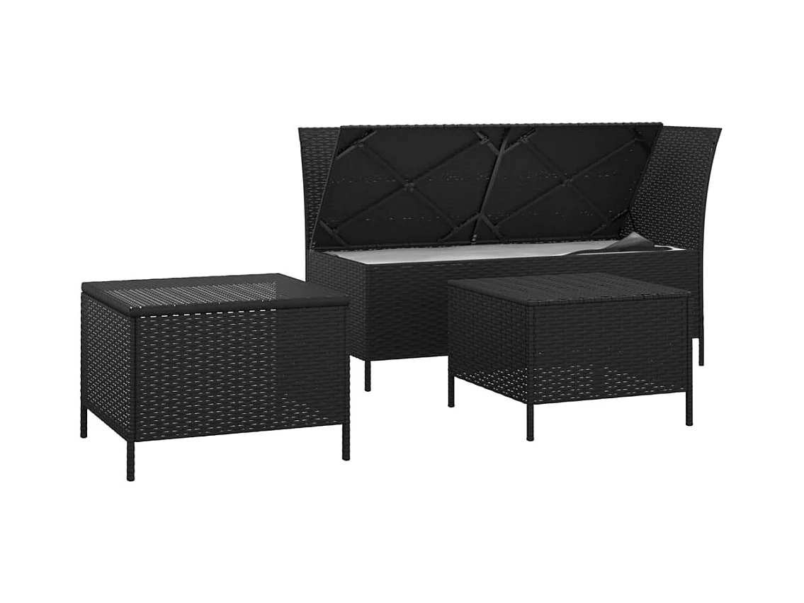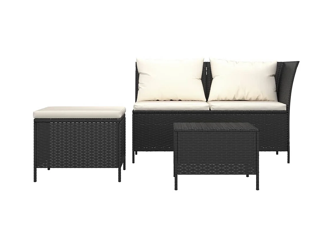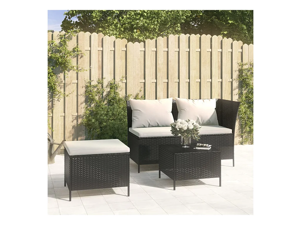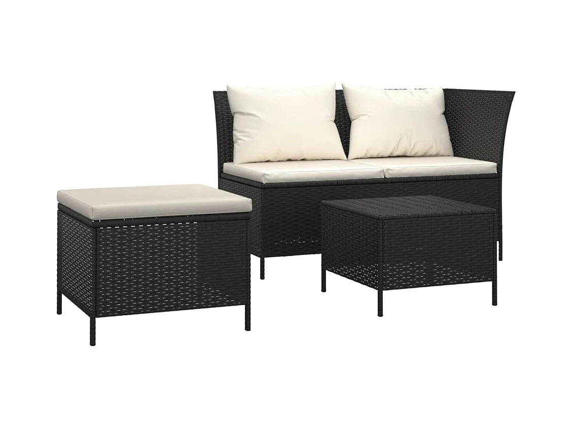 3 pzas Salón de jardín con cojines ratán sintético negro ES19589