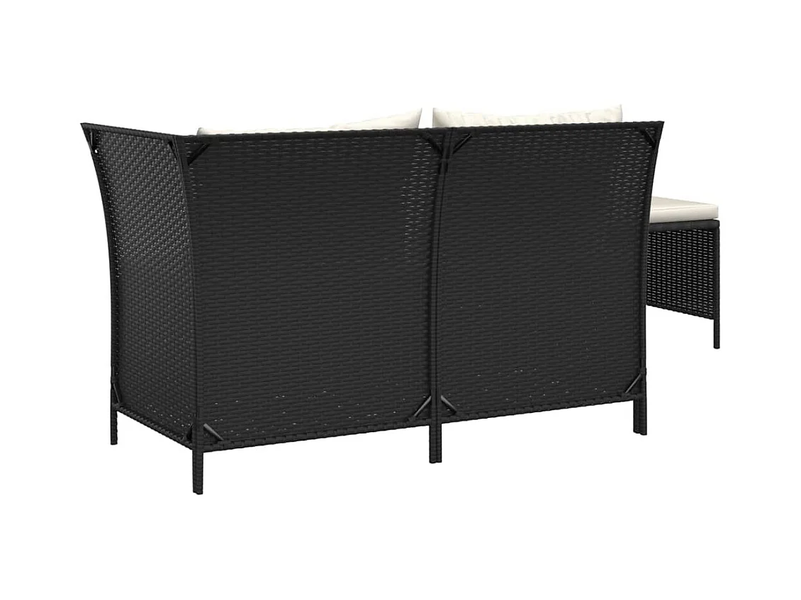 3 pzas Salón de jardín y cojines ratán sintético negro ES64897