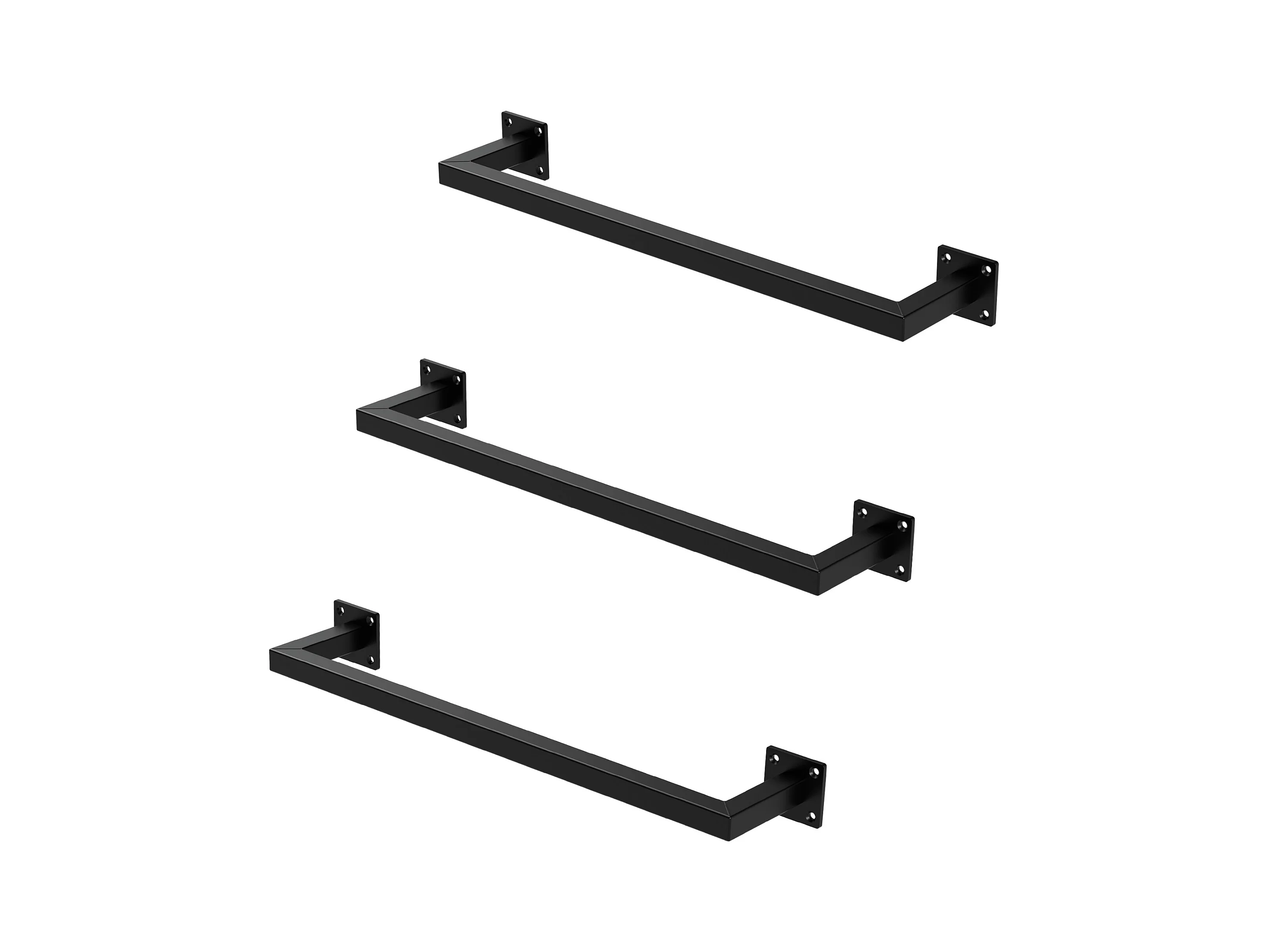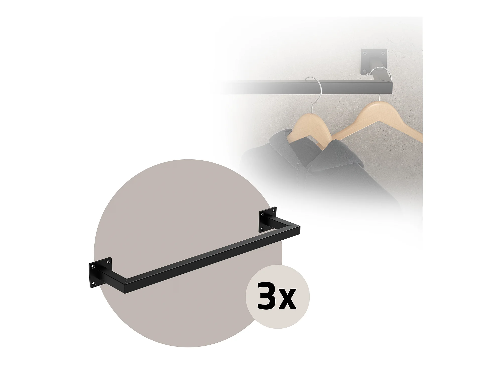 3x Perchero de pared negro para vestidor/armario barra para ropa/toallas 60x12cm