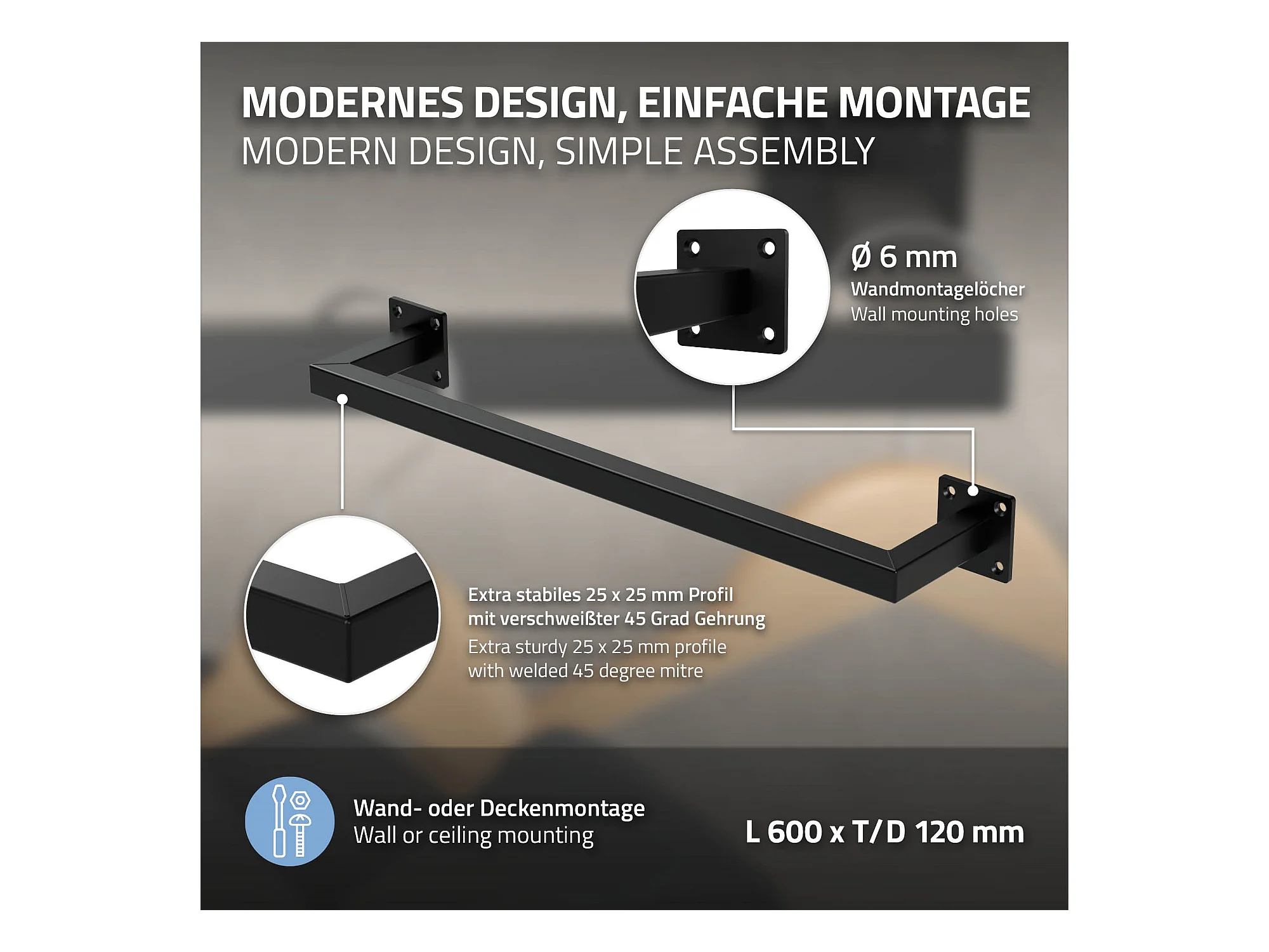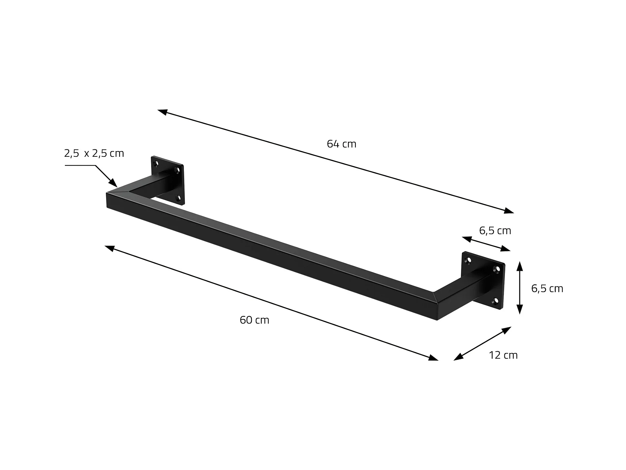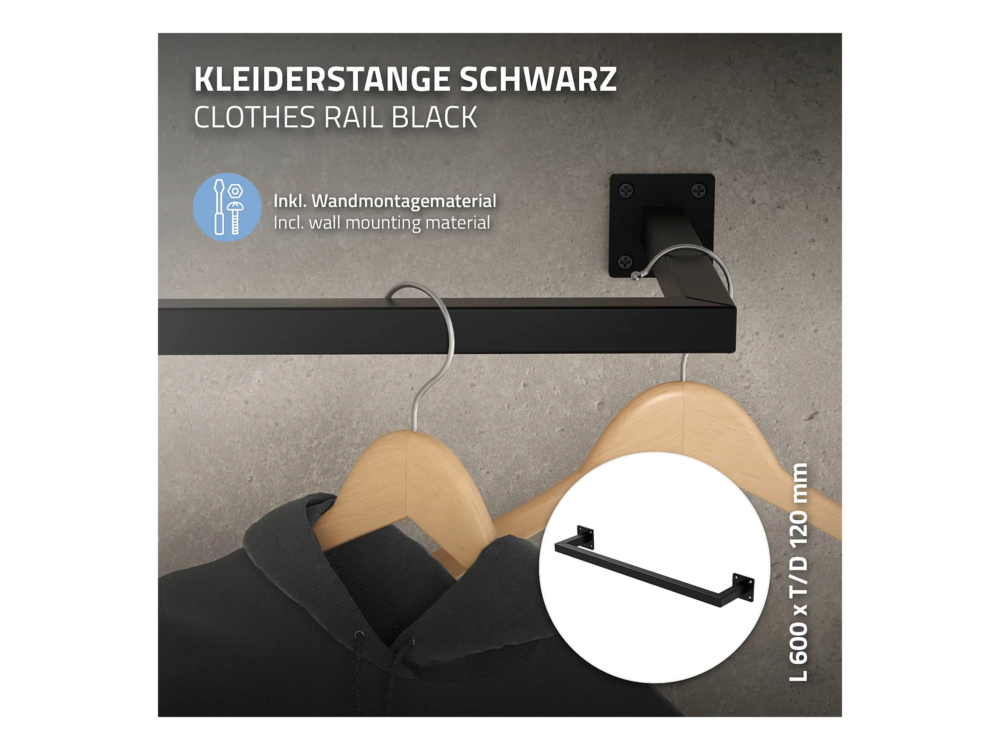 2x Perchero de pared negro para vestidor/armario barra para ropa/toallas 60x12cm