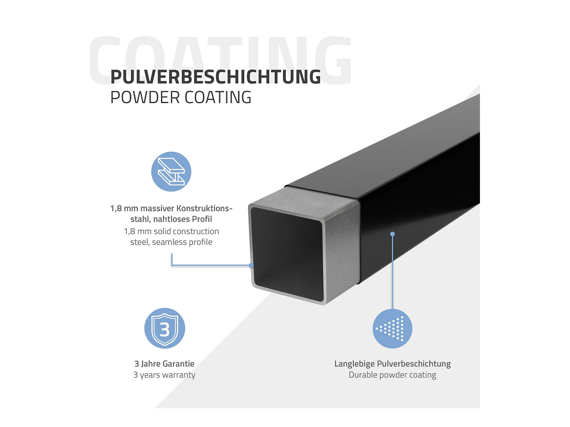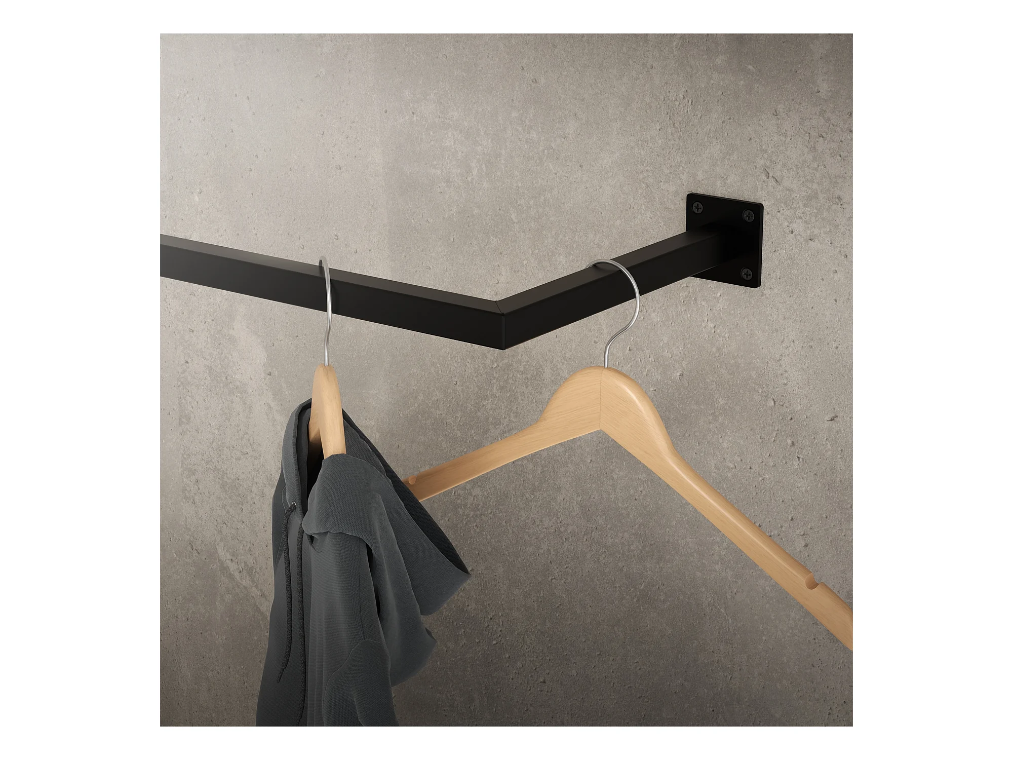 2x Perchero de pared negro para vestidor/armario barra para ropa/toallas110x12cm