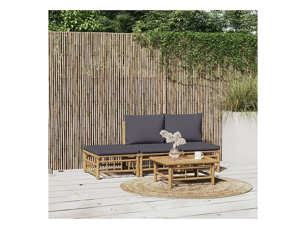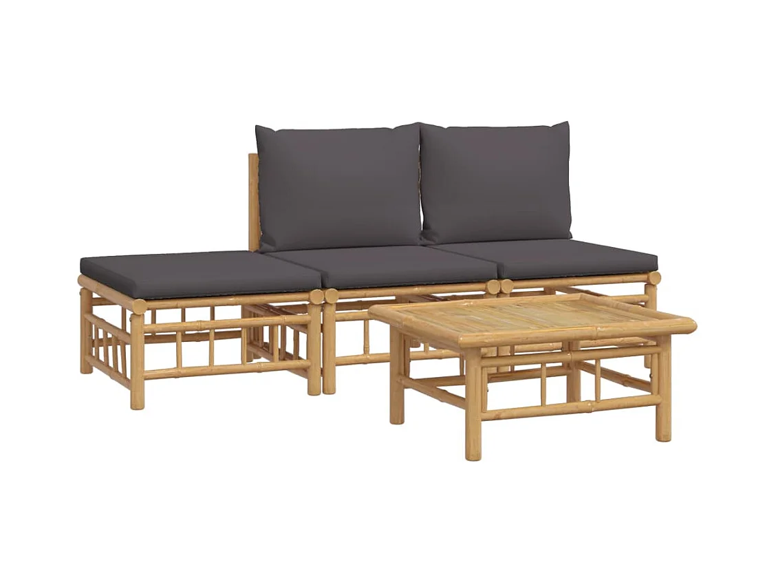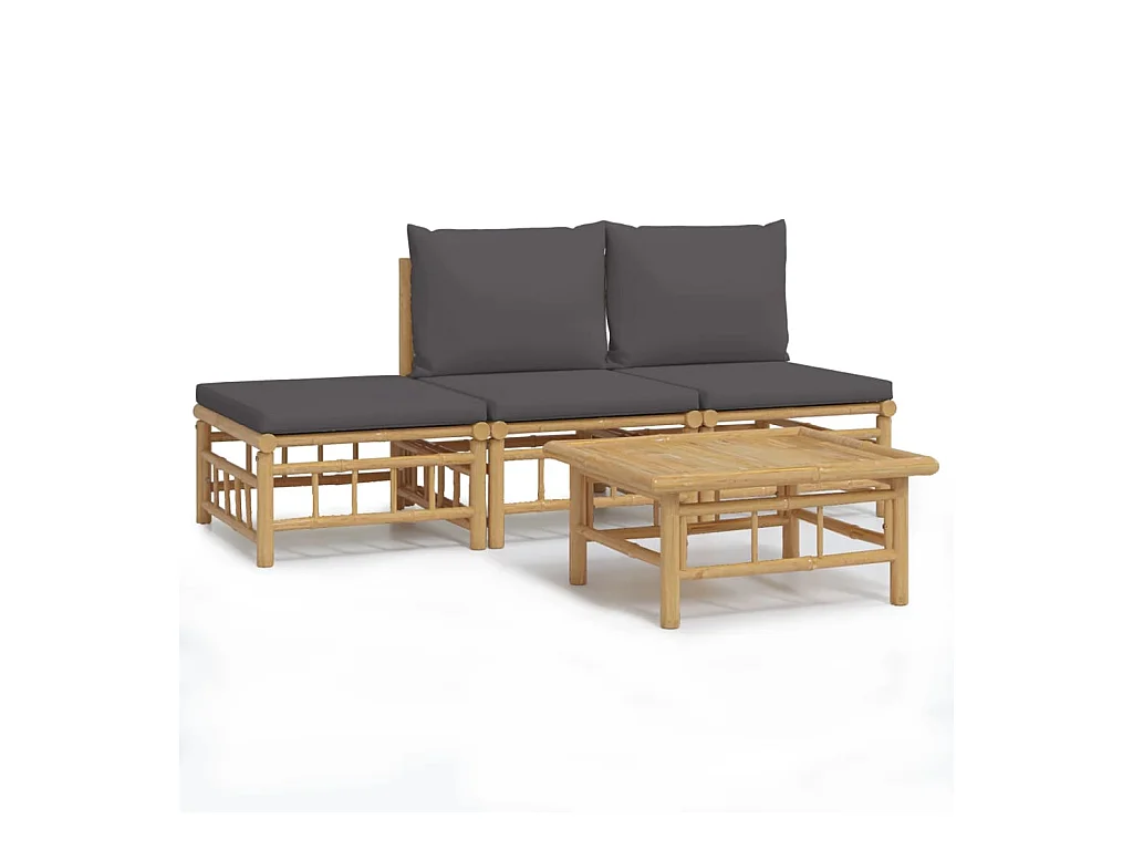 4 pzas Salón de jardín bambú con cojines gris oscuro ES27039