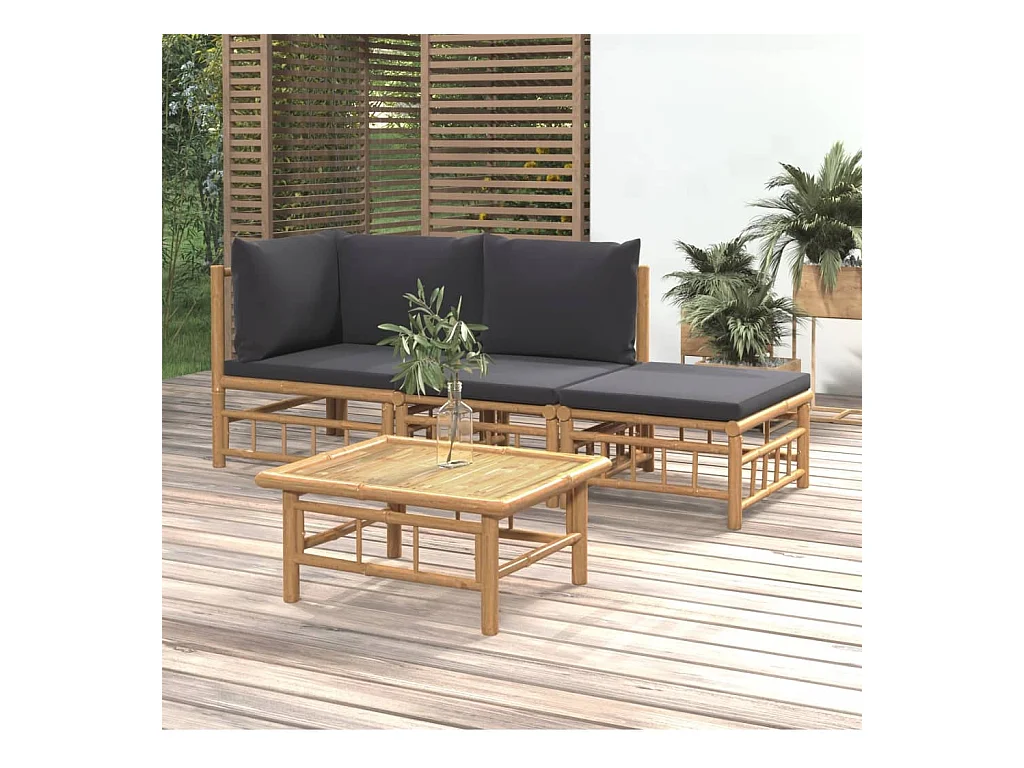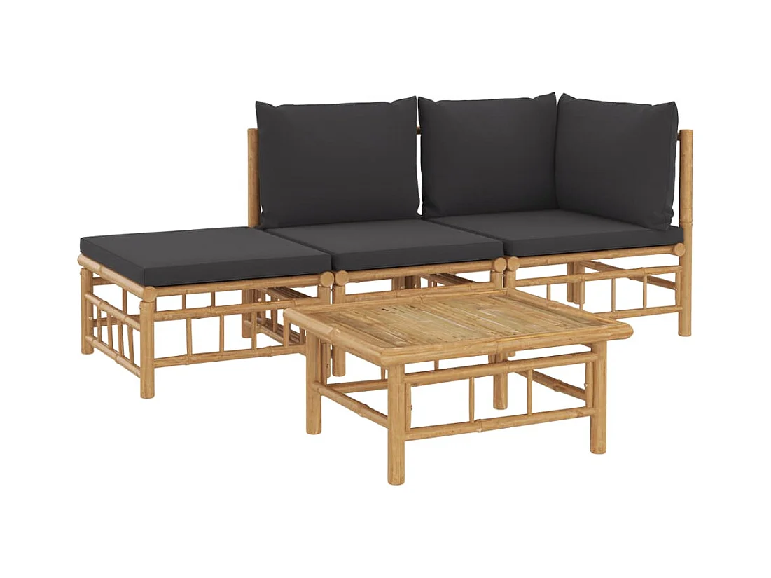 4 pzas Salón de jardín bambú con cojines gris oscuro ES99008