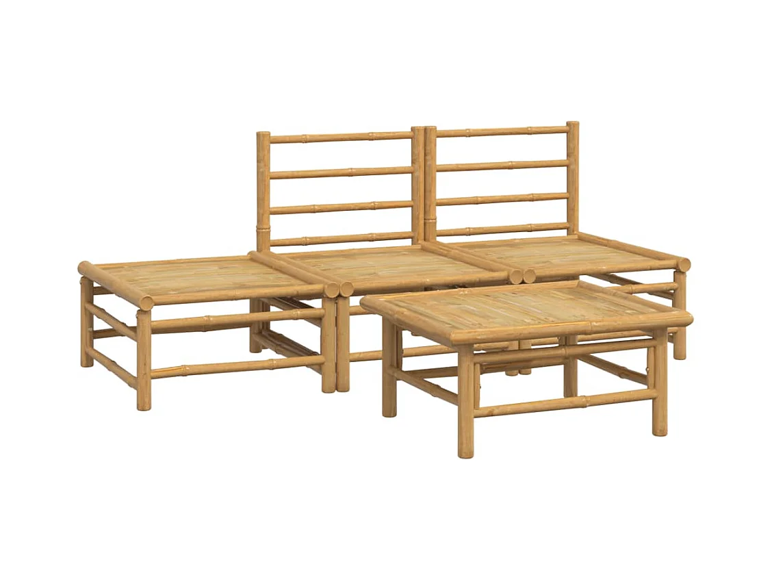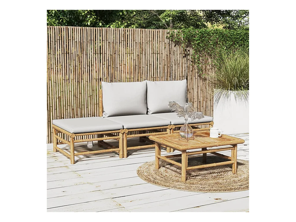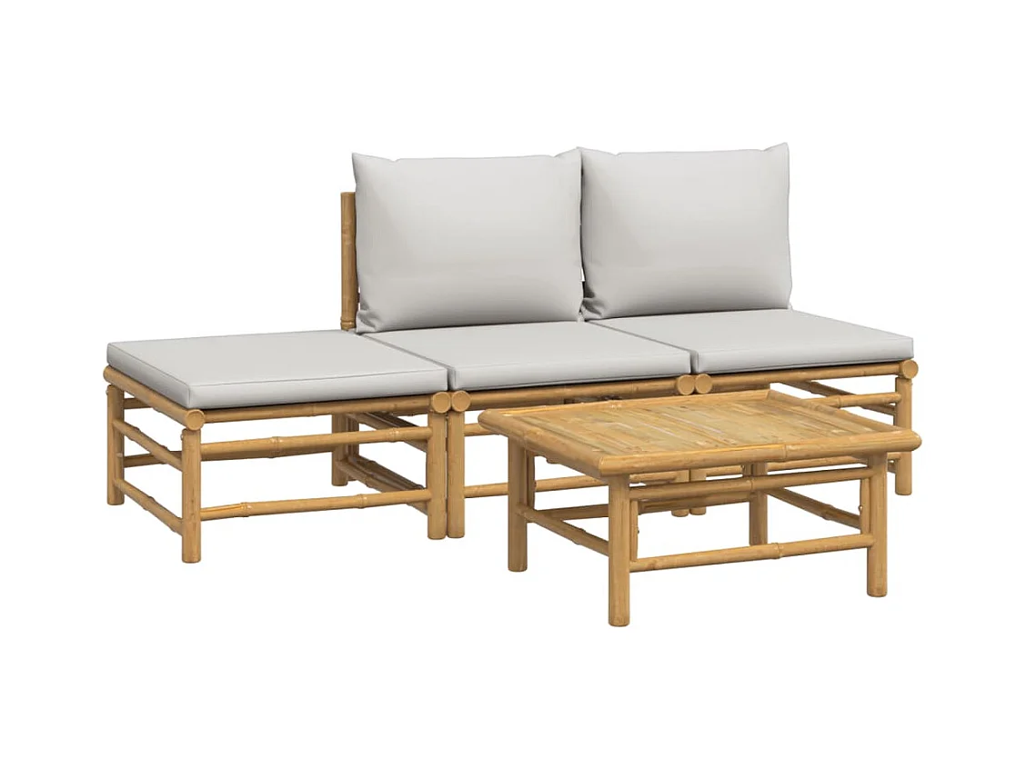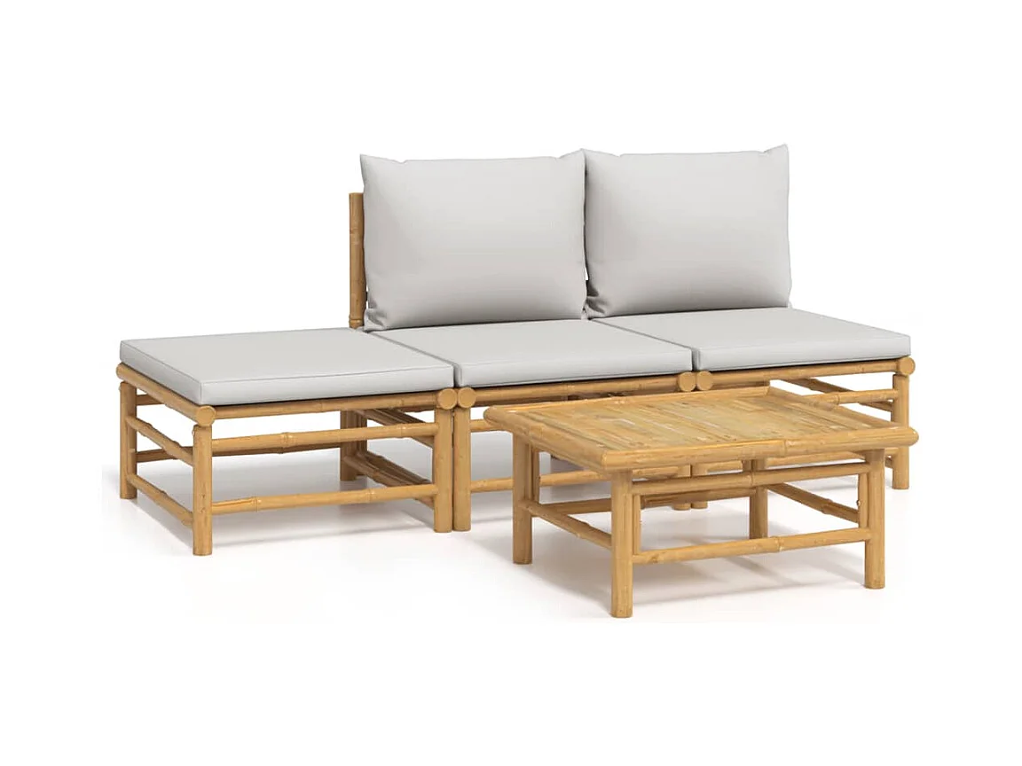 4 pzas Salón de jardín bambú y cojines gris claro ES56255