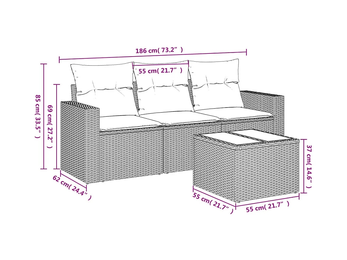 4 pzas Salón de jardín con cojines ratán sintético negro ES69220