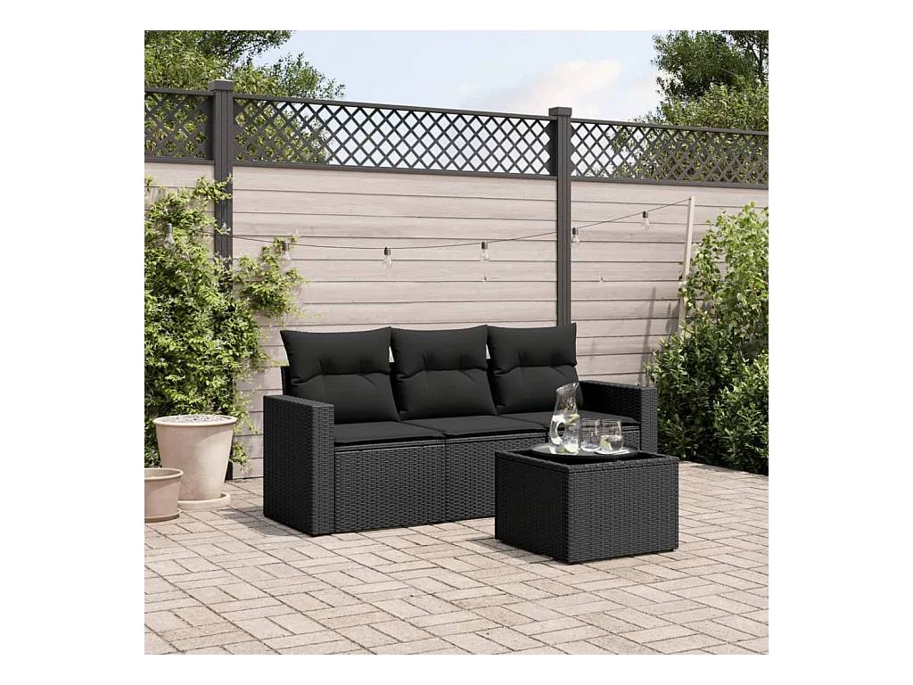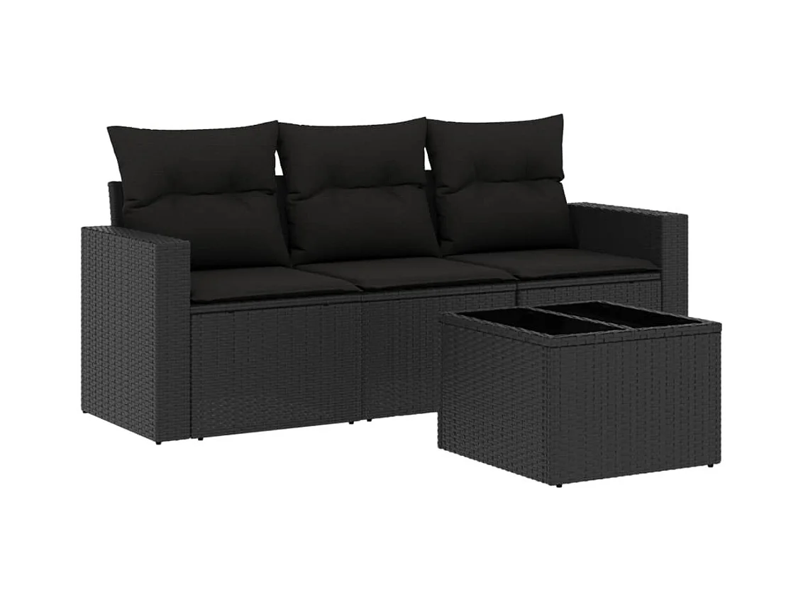 4 pzas Salón de jardín con cojines ratán sintético negro ES44900