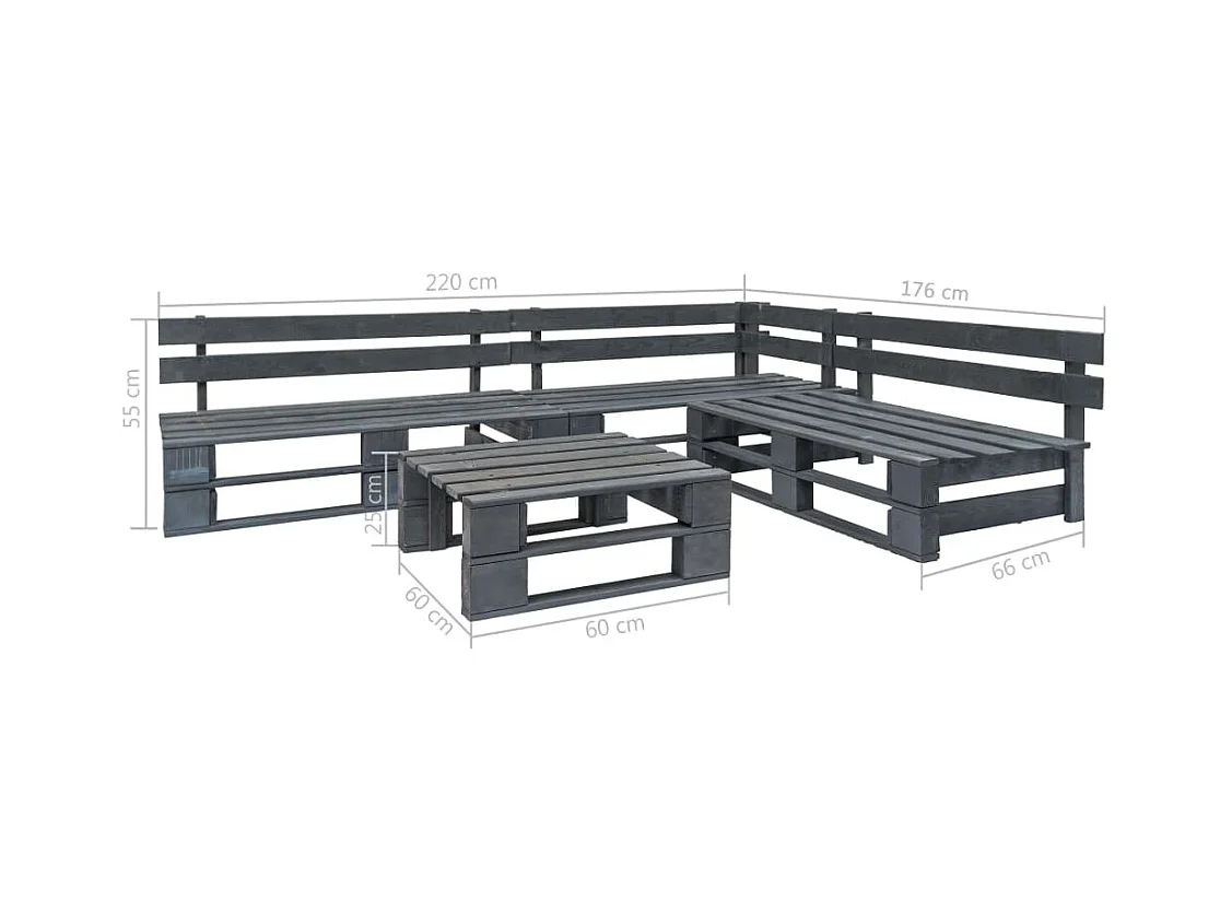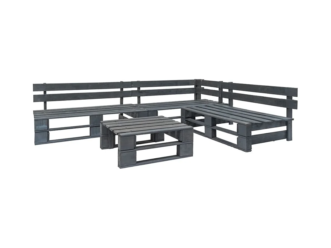 4 pzas Set de Salón palets de jardín madera gris ES93275