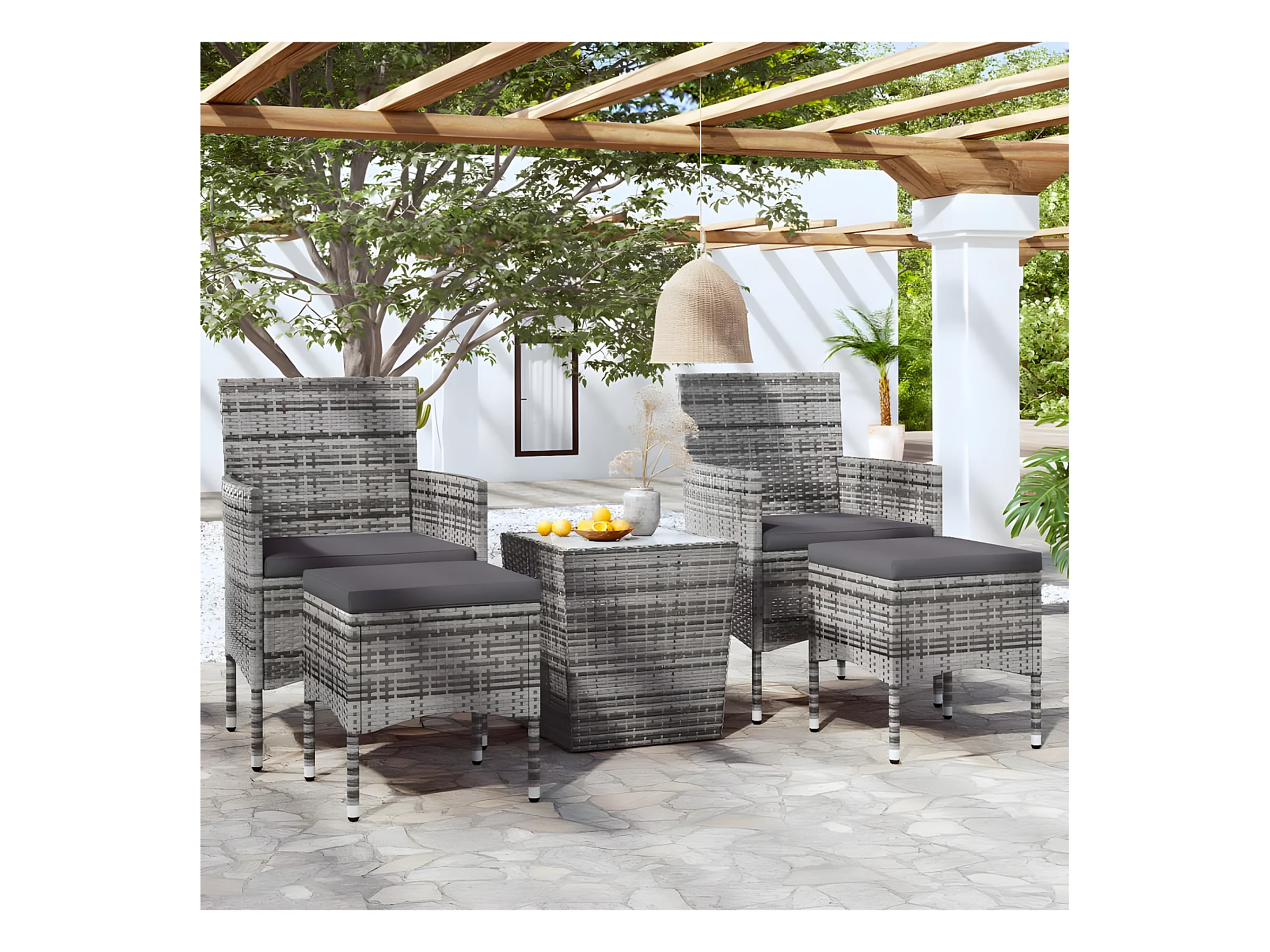 Set comedor de jardín 5 piezas con cojines ratán sintético gris