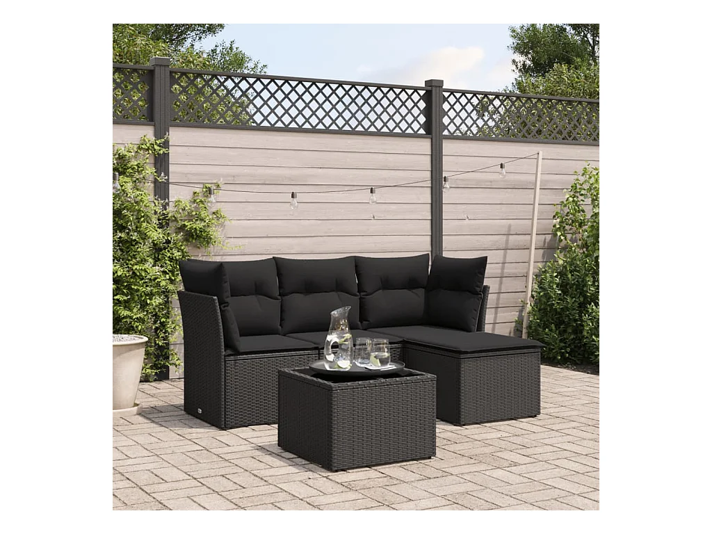 5 pzas Salón de jardín y cojines ratán sintético negro ES99430