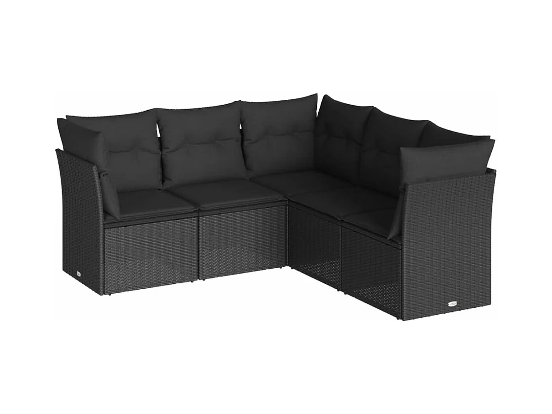 5 pzas Salón de jardín y cojines ratán sintético negro ES92265