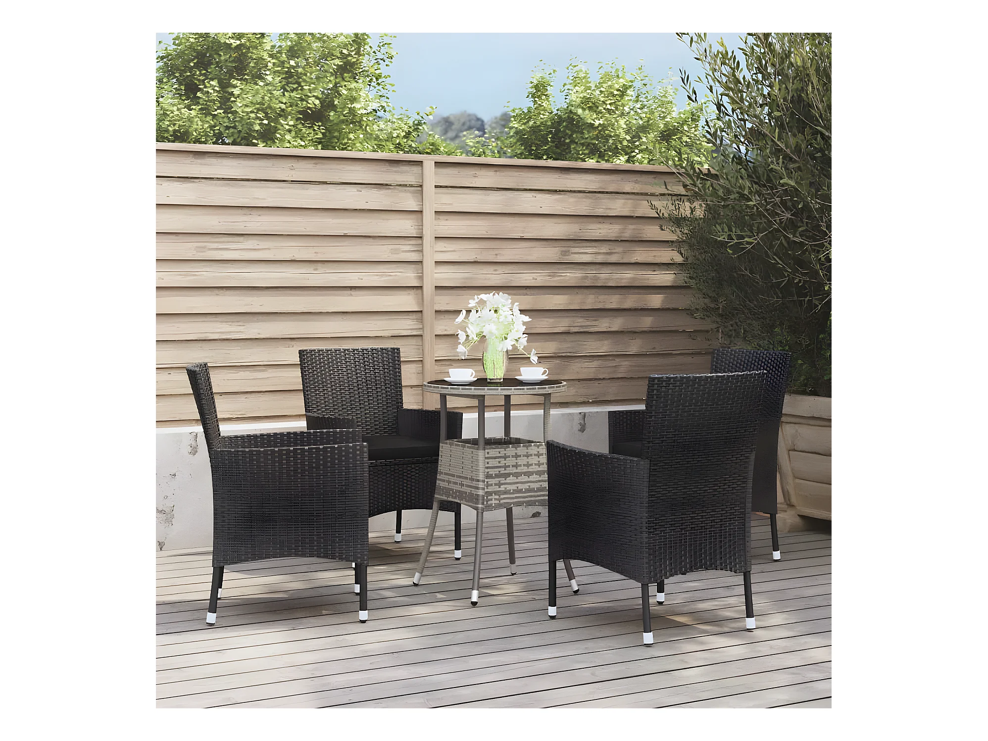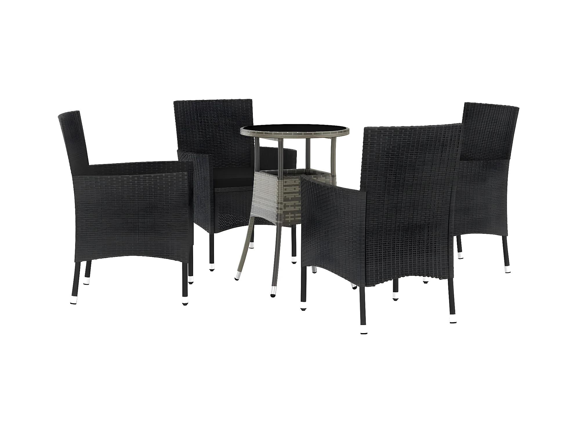 5 pzas Comedor de jardín y cojines ratán sintético negro KOW24209