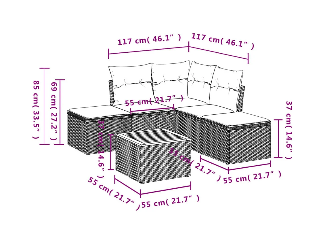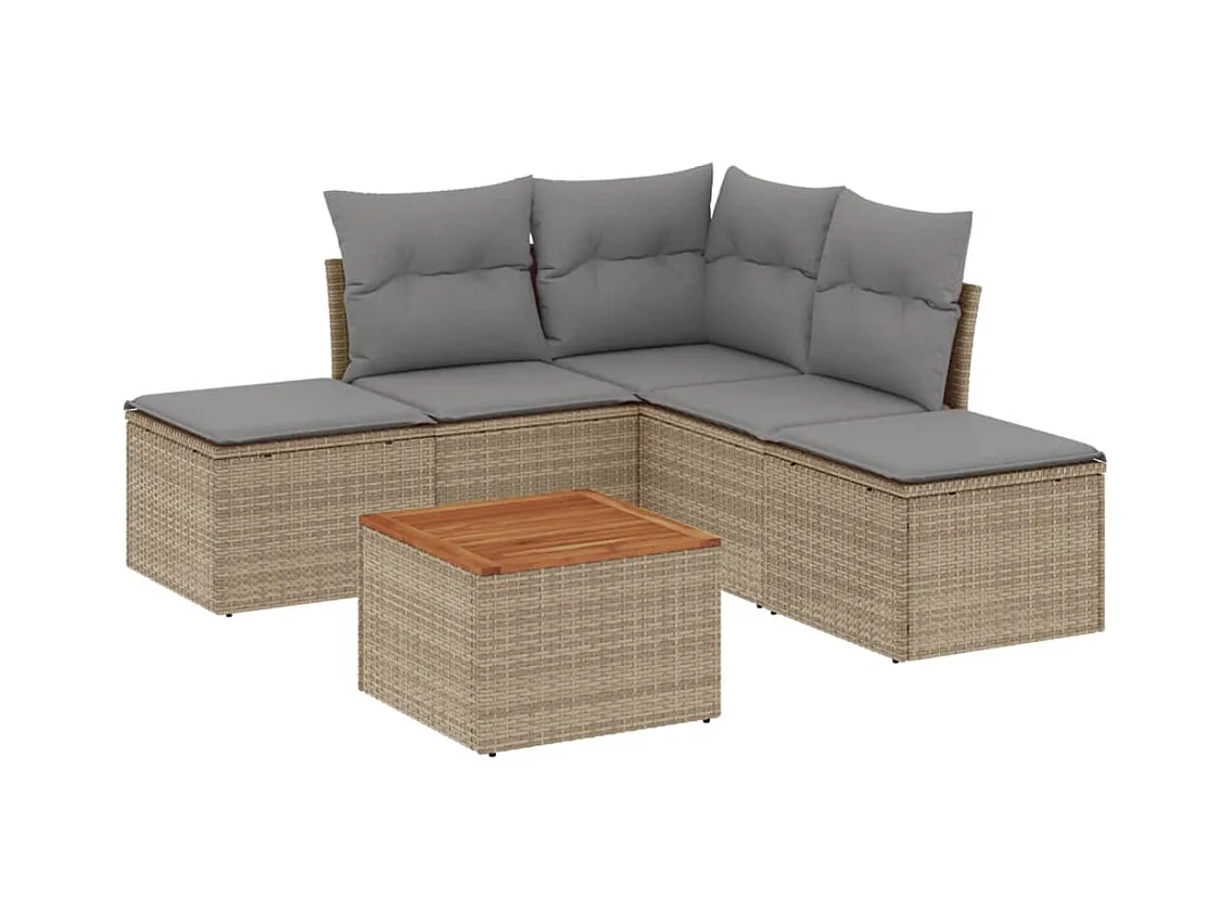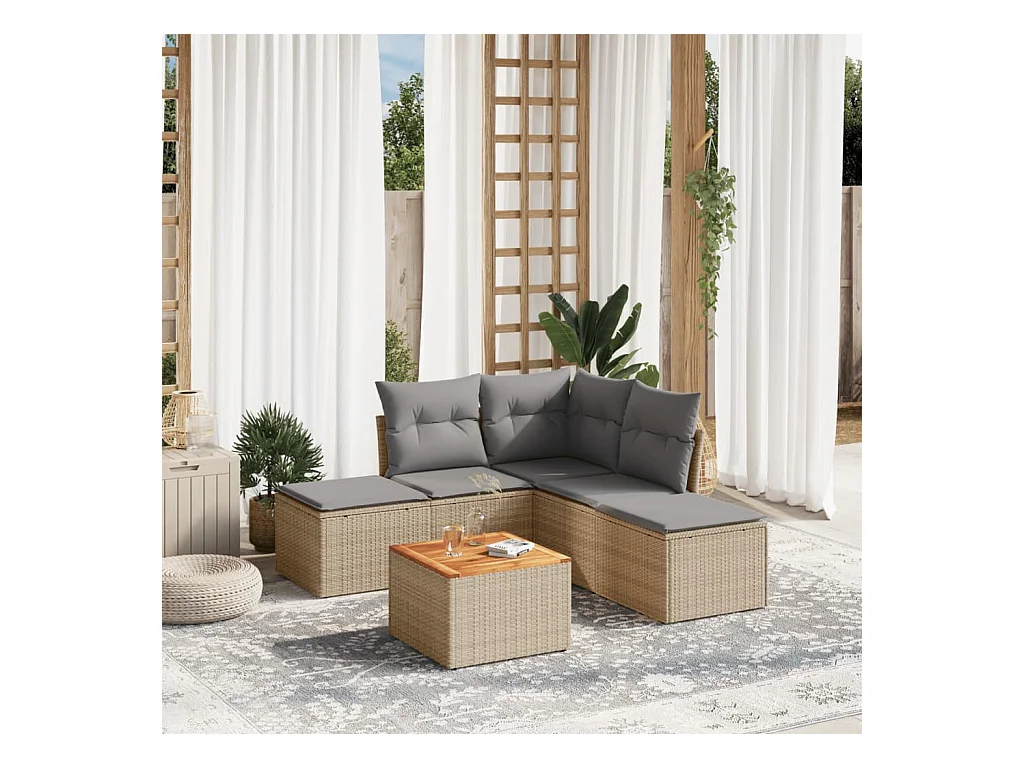 6 pzas Salón de jardín con cojines ratán sintético beige ES59584