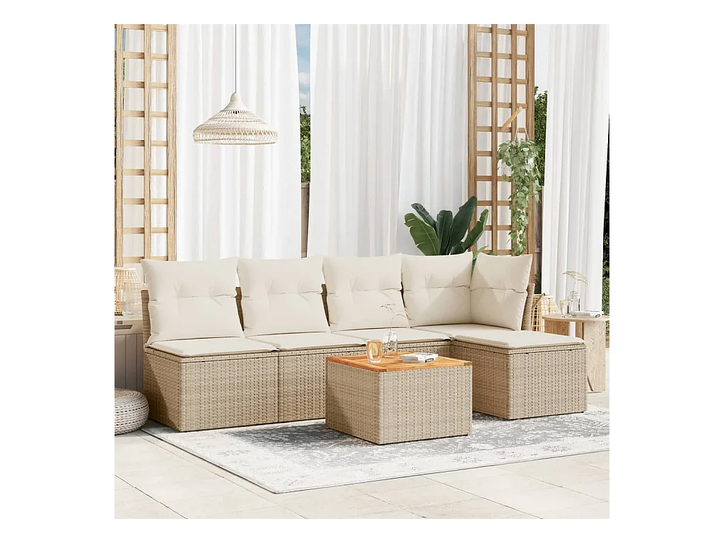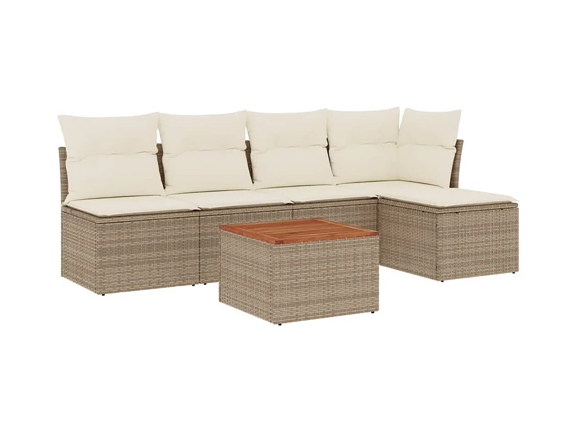 6 pzas Salón de jardín con cojines ratán sintético beige ES59584