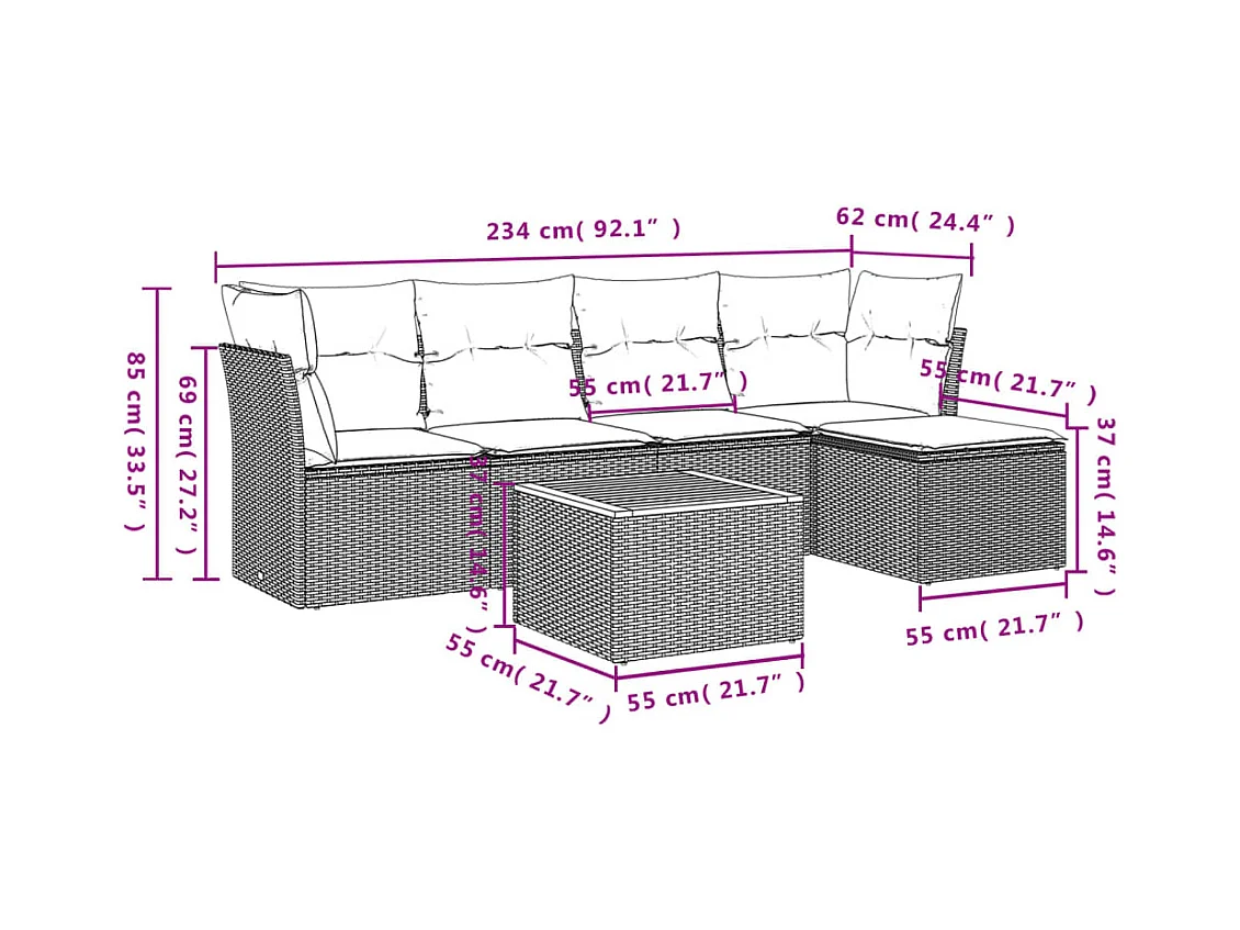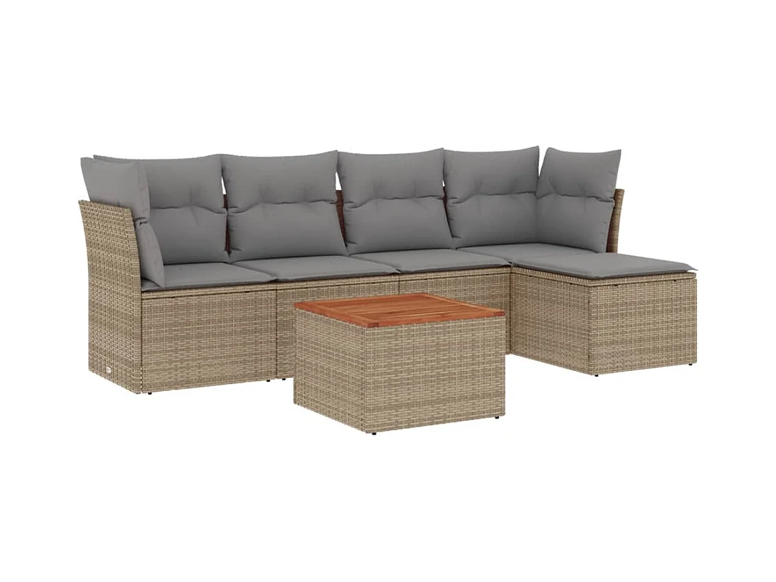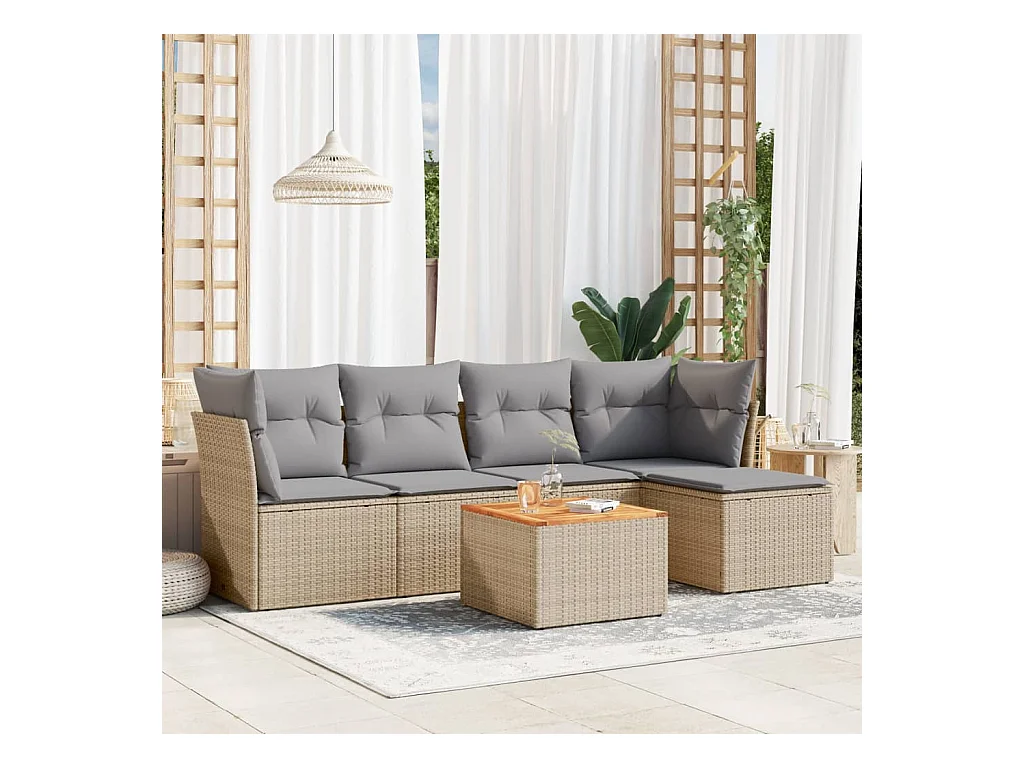 6 pzas Salón de jardín con cojines ratán sintético beige ES59584